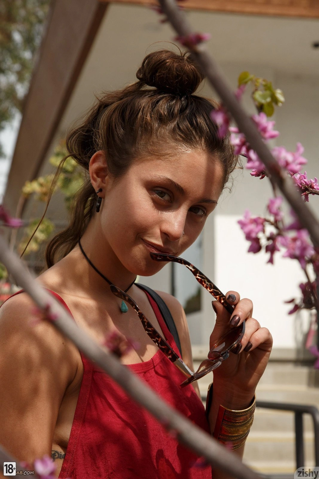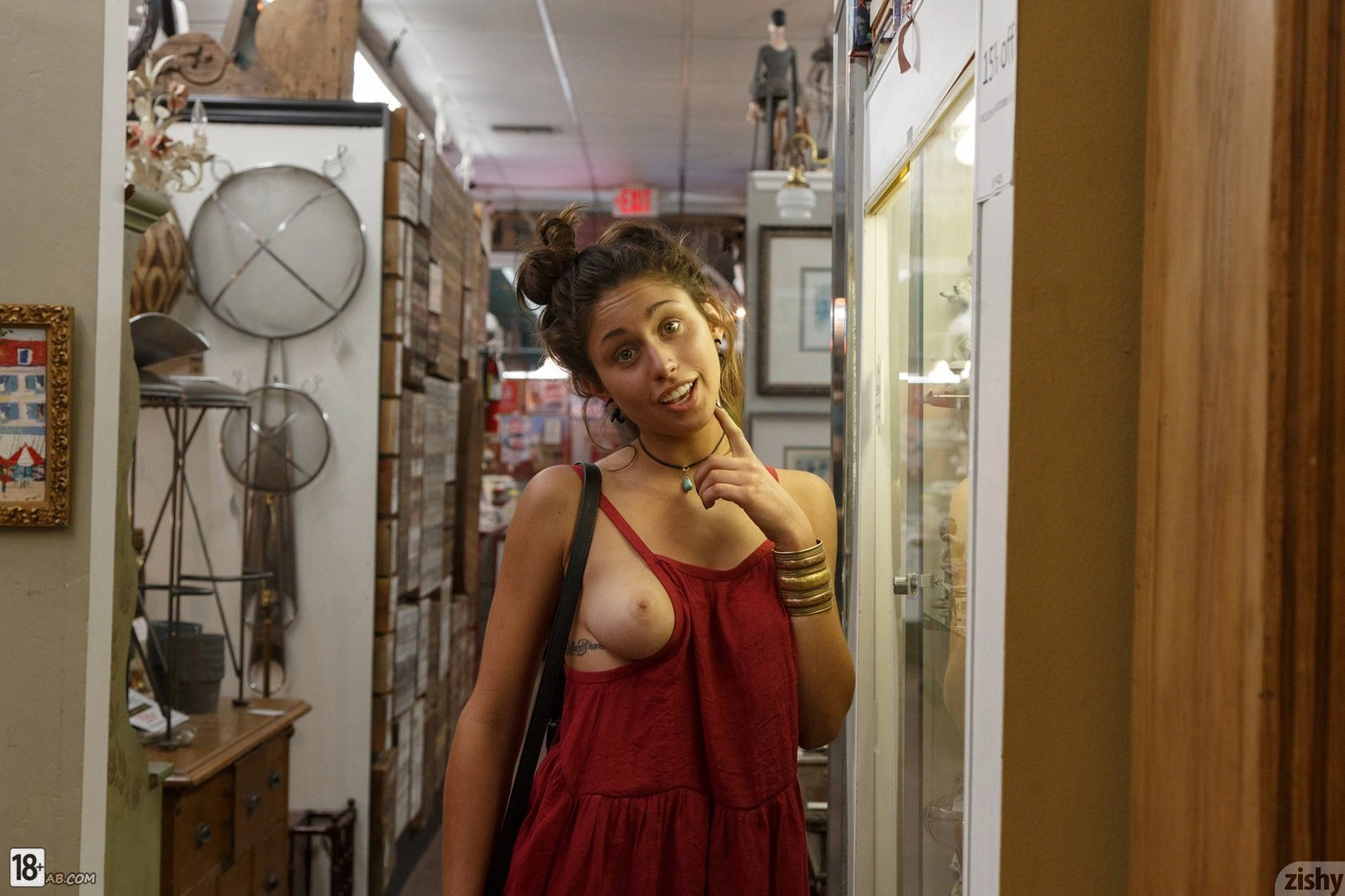 Голые фото молоденькой стройняшки в красном платье — жаркие кадры, где милашка без стеснения засвечивает сиськи и попку, раком гибнущая на глазах прохожих. Белые трусики только намекают на приличие, а всё остальное — голый разврат по-уличному.
