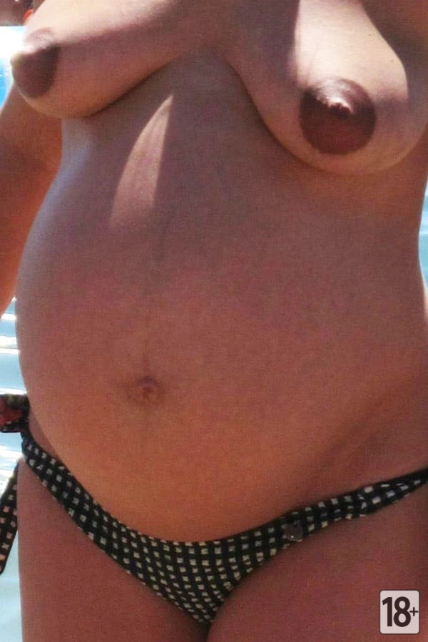 На фотографии видна беременная блондинка, наслаждаясь последними летними днями, молодая мама-ожидание в бикини с безукоризненно загорелым животом и пышными грудями поднимает настроение. Необычный образ для будущей мамы - доказательство того, что беременность не мешает быть сексуальной и красивой!