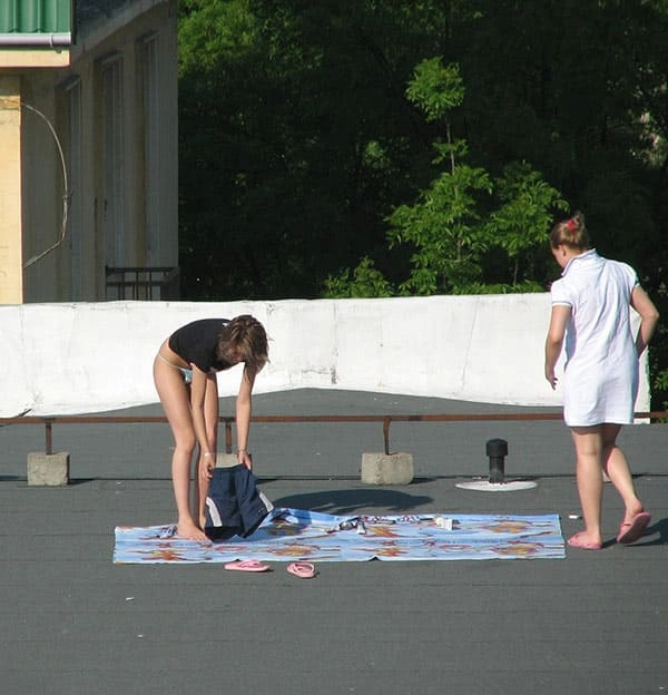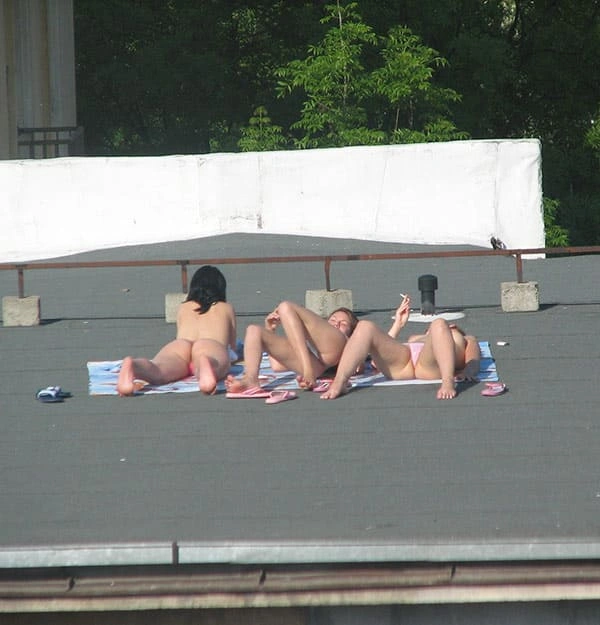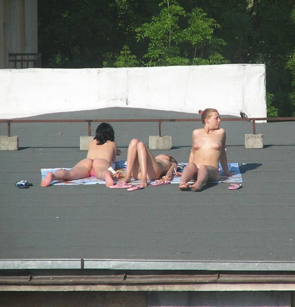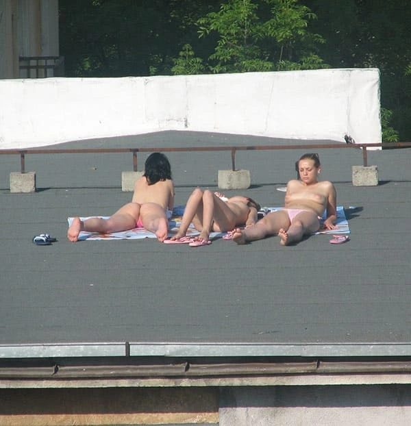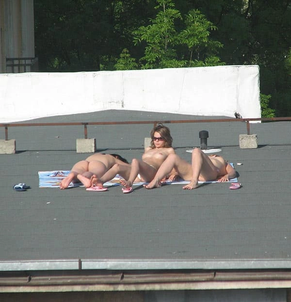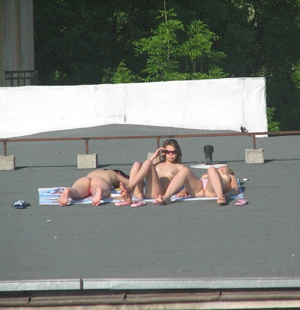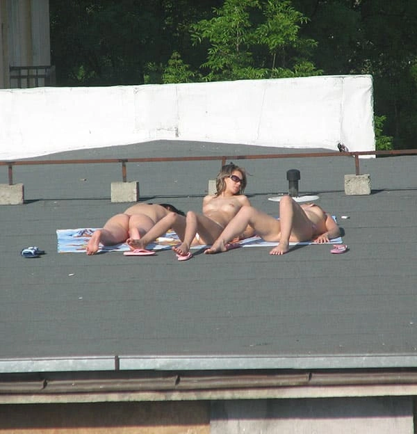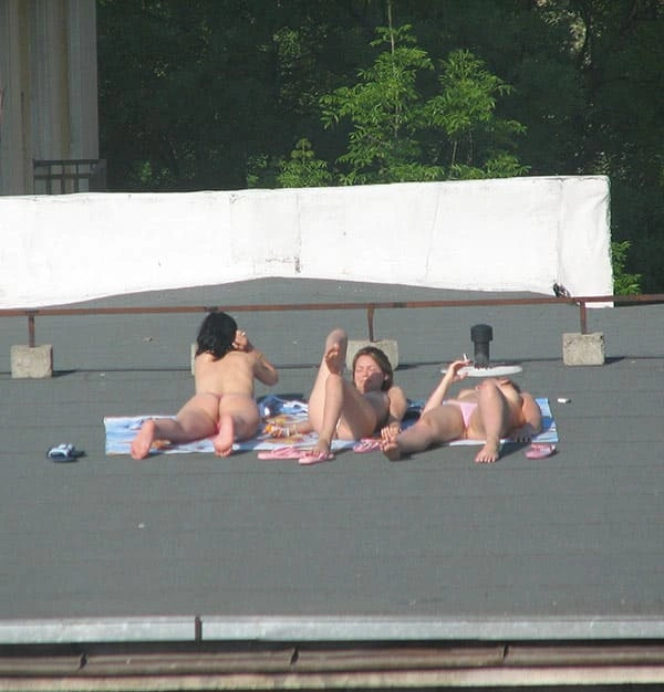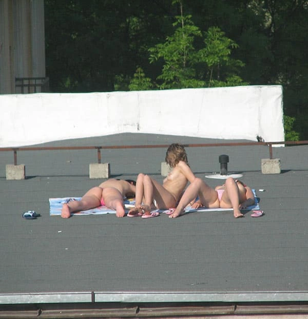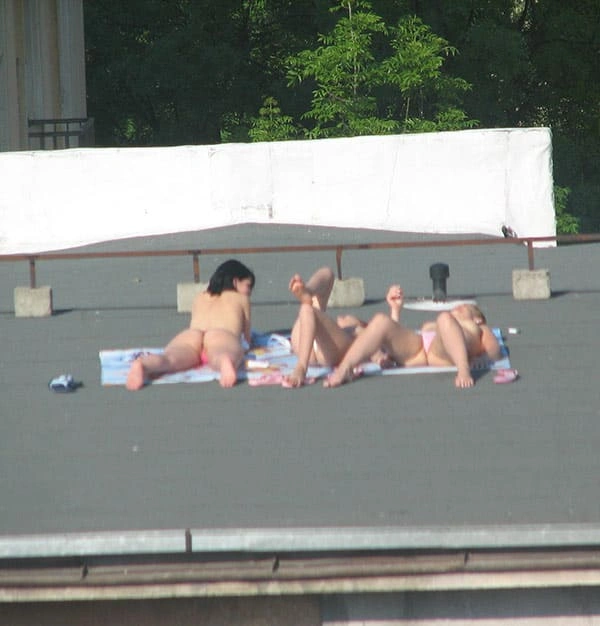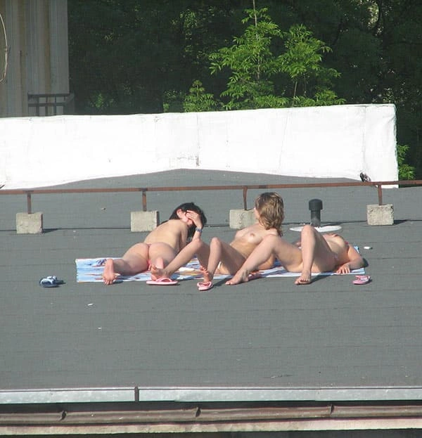 Ты видел это фото, где три русские девушки загорают на крыше? Они в стрингах и с голыми сиськами! Я просто не могу поверить, что они решились на такое. Но признаться, они выглядят просто ошеломительно! Я бы тоже хотела так загорать, но я бы никогда не смогла показаться на всю улицу в таком наряде. Вот это да, смелые девчонки!
