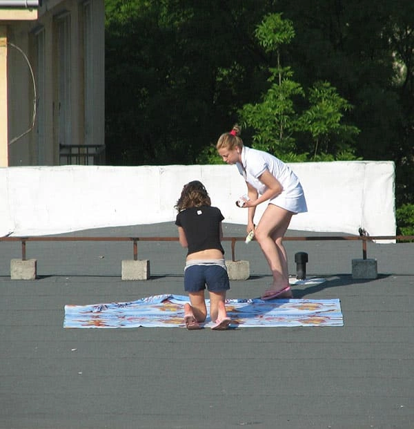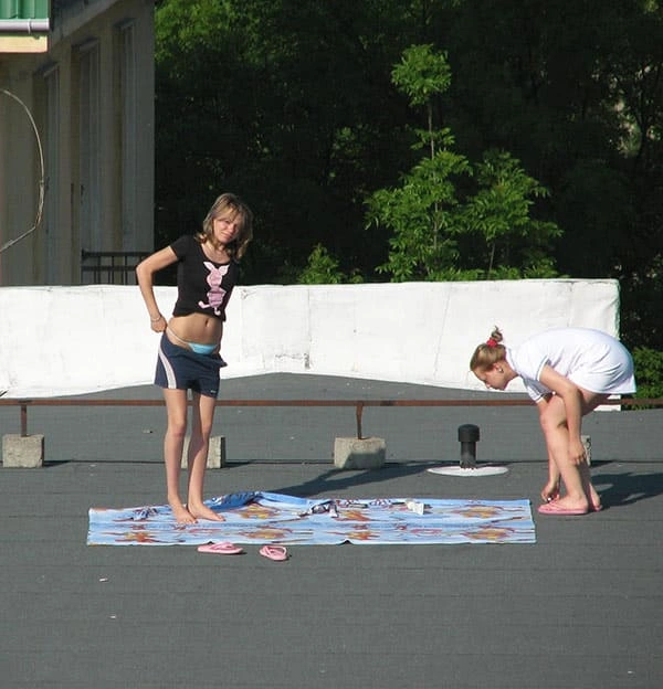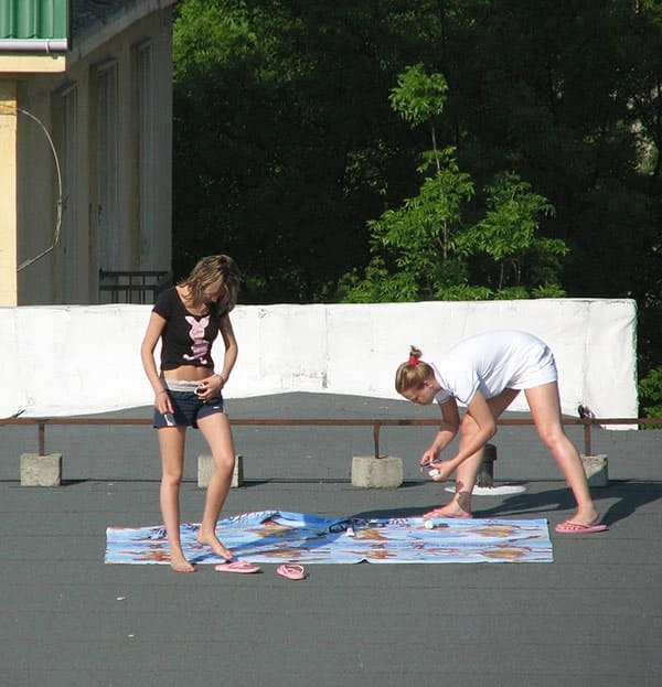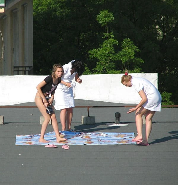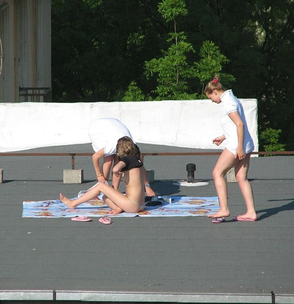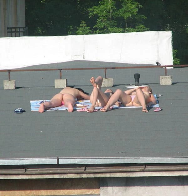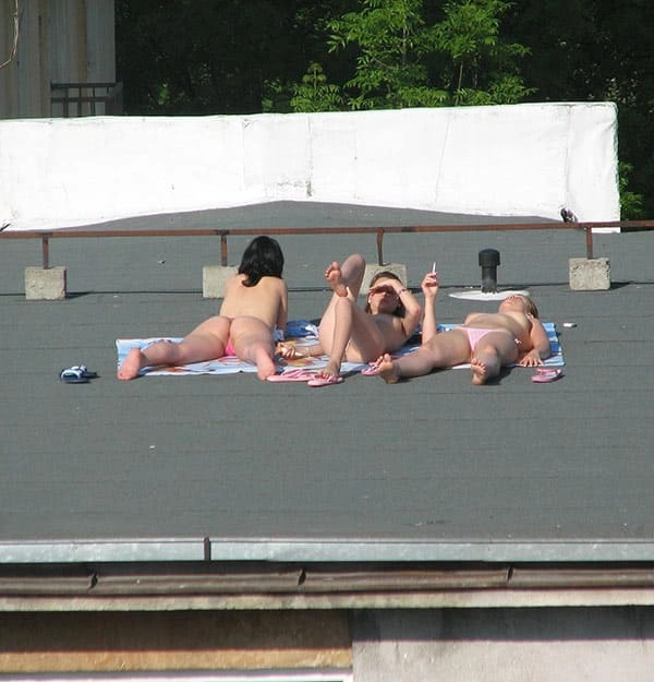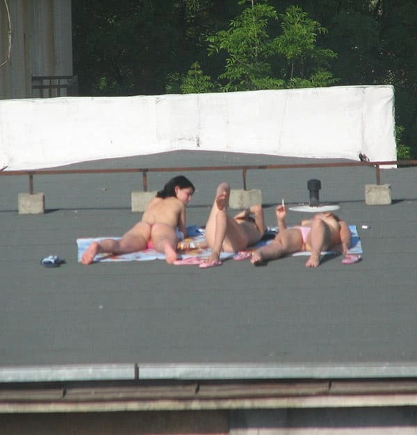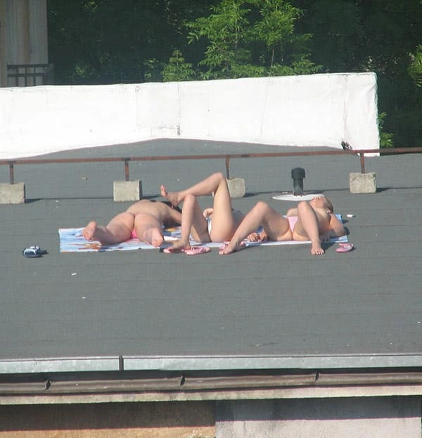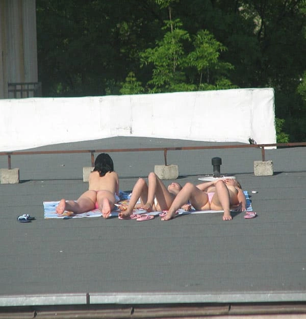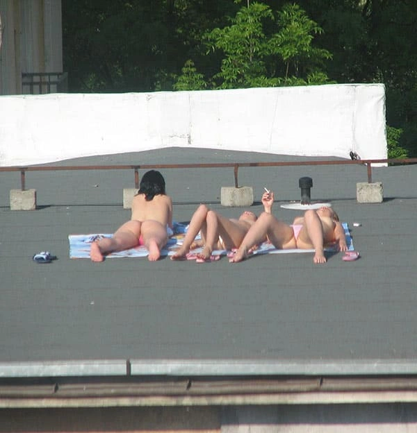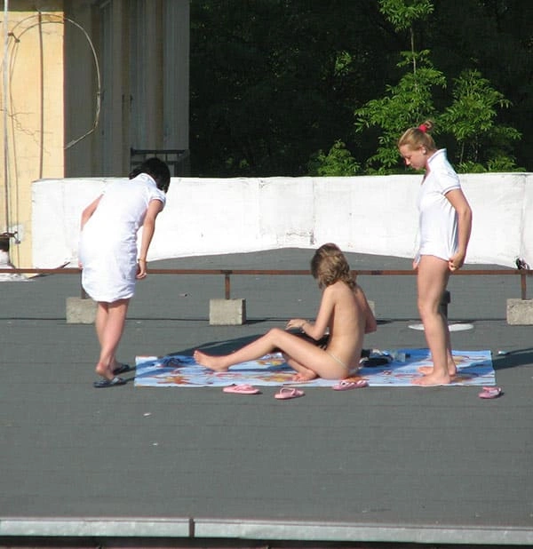 Ты видел это фото, где три русские девушки загорают на крыше? Они в стрингах и с голыми сиськами! Я просто не могу поверить, что они решились на такое. Но признаться, они выглядят просто ошеломительно! Я бы тоже хотела так загорать, но я бы никогда не смогла показаться на всю улицу в таком наряде. Вот это да, смелые девчонки!