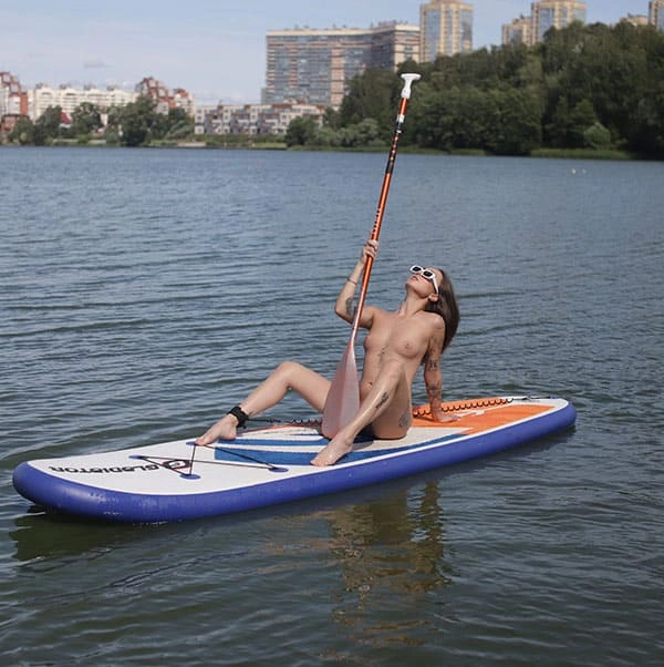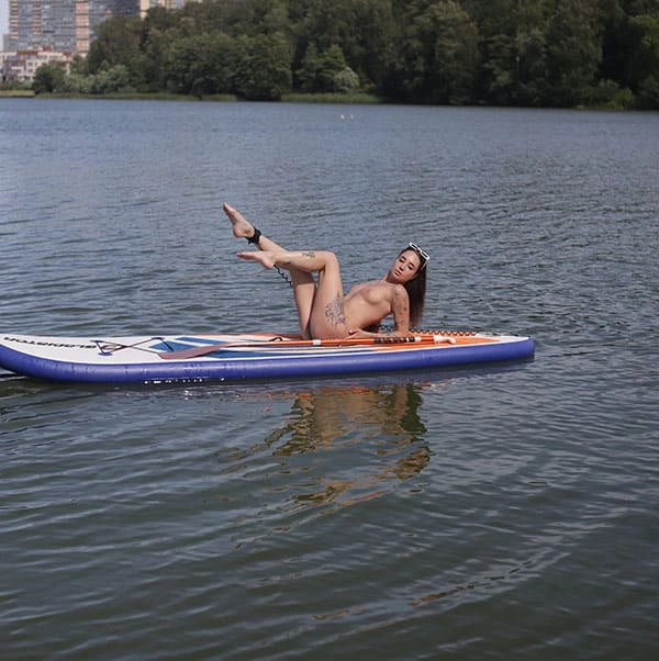 Девушка с татуировками - голые фото на сапборде