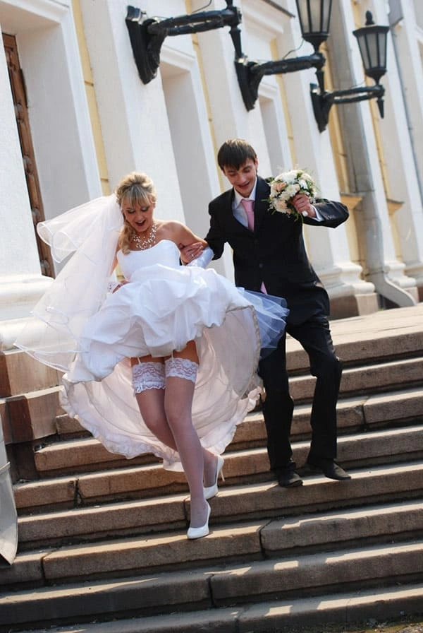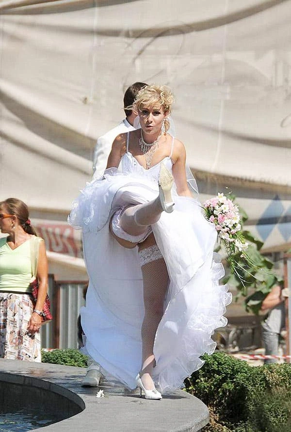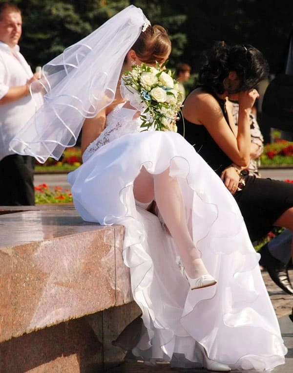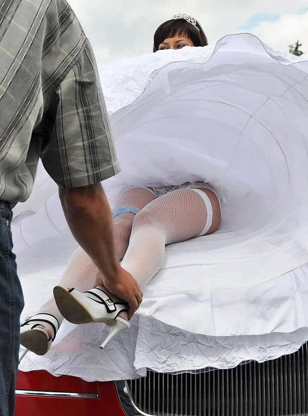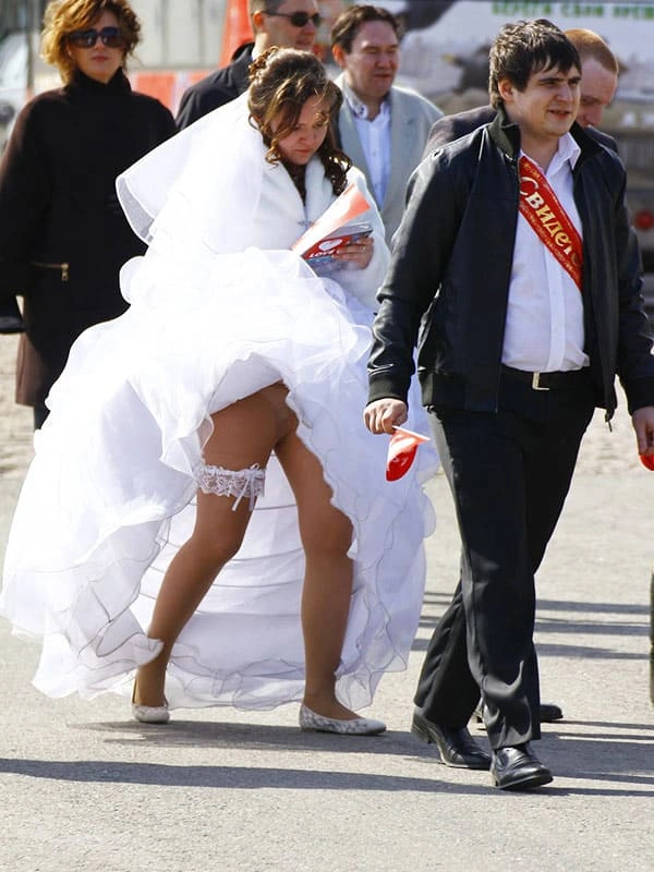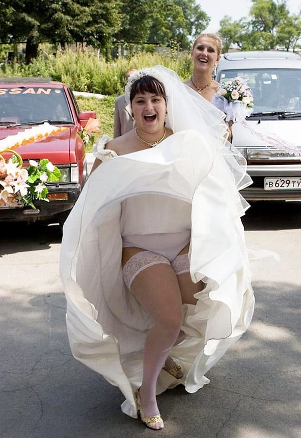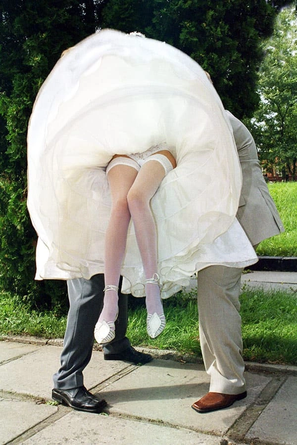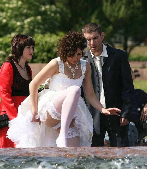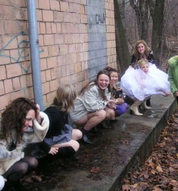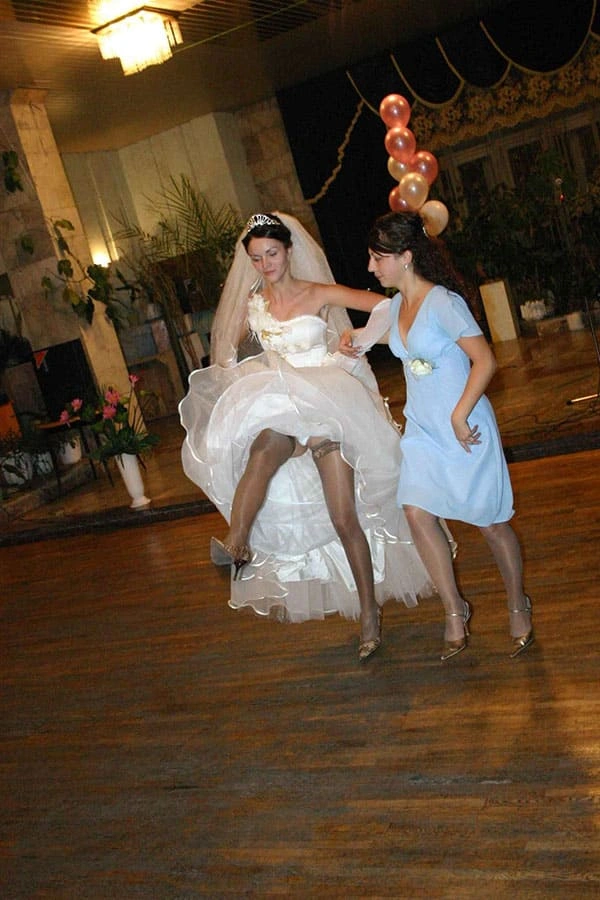 На одной фотке даже парень случайно попал в кадр, пытаясь поднять невесту на руки. Все это выглядит очень смешно и немного пошло, но в то же время очень естественно и отражает настоящую атмосферу свадебного веселья. Наверное, после таких фото молодожены будут смеяться, вспоминая свой особенный день.