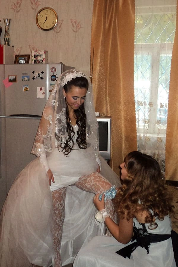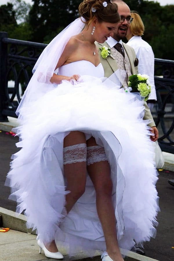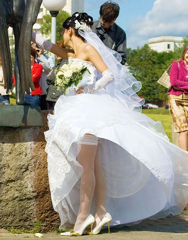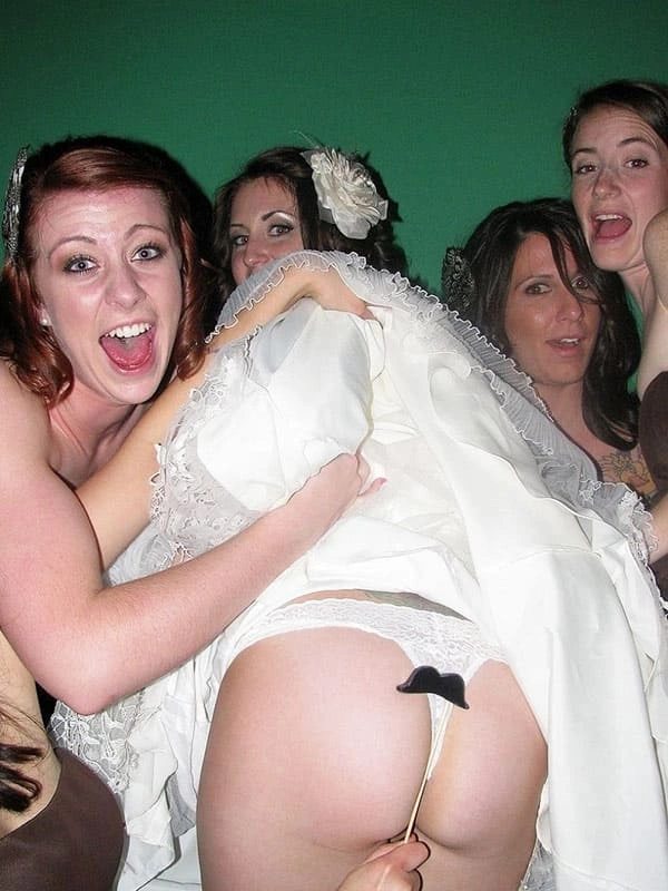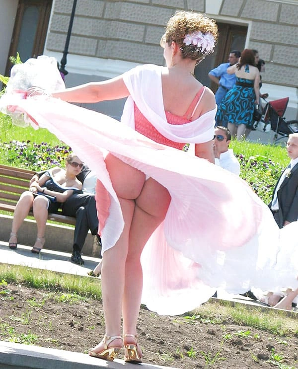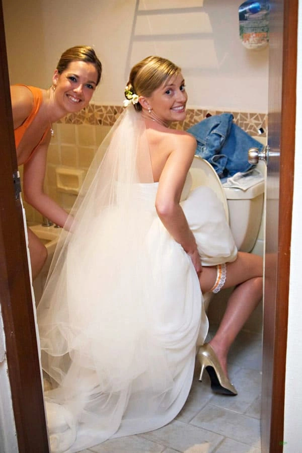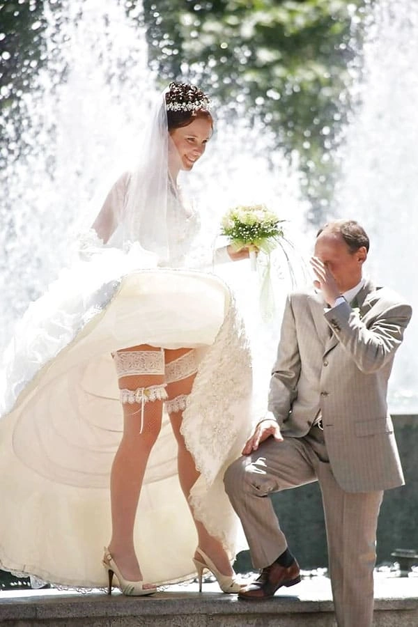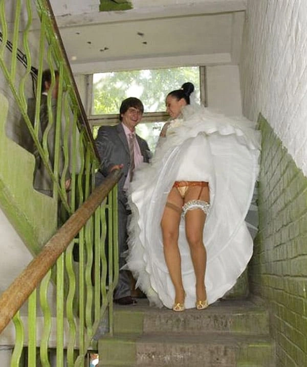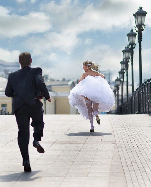 На одной фотке даже парень случайно попал в кадр, пытаясь поднять невесту на руки. Все это выглядит очень смешно и немного пошло, но в то же время очень естественно и отражает настоящую атмосферу свадебного веселья. Наверное, после таких фото молодожены будут смеяться, вспоминая свой особенный день.