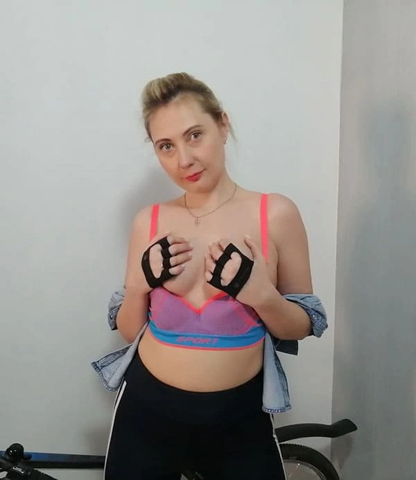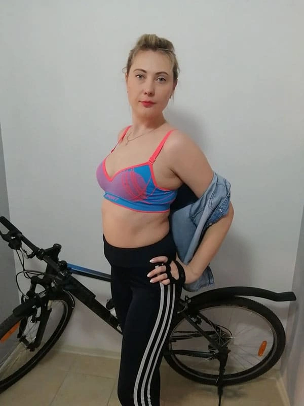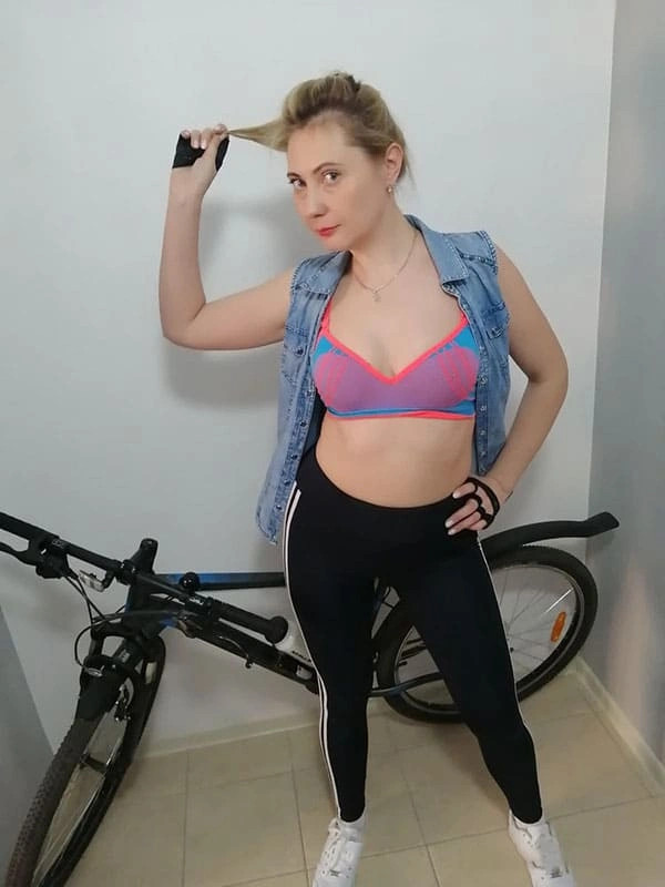 Домашняя ню фото русской велосипедистки в спортивной одежде