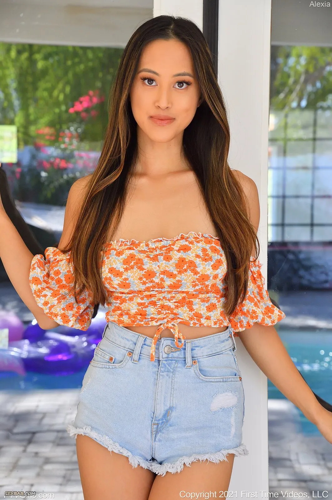 Милая азиатка в коротких джинсовых шортах