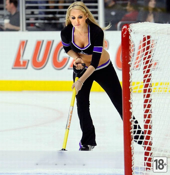Это девушки, которые работают на хоккейных матчах. Когда перерыв между играми, они чистят лед. Они также делают так, чтобы зрителям было весело и интересно во время перерывов.