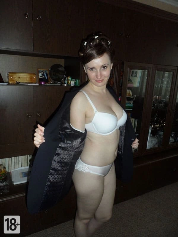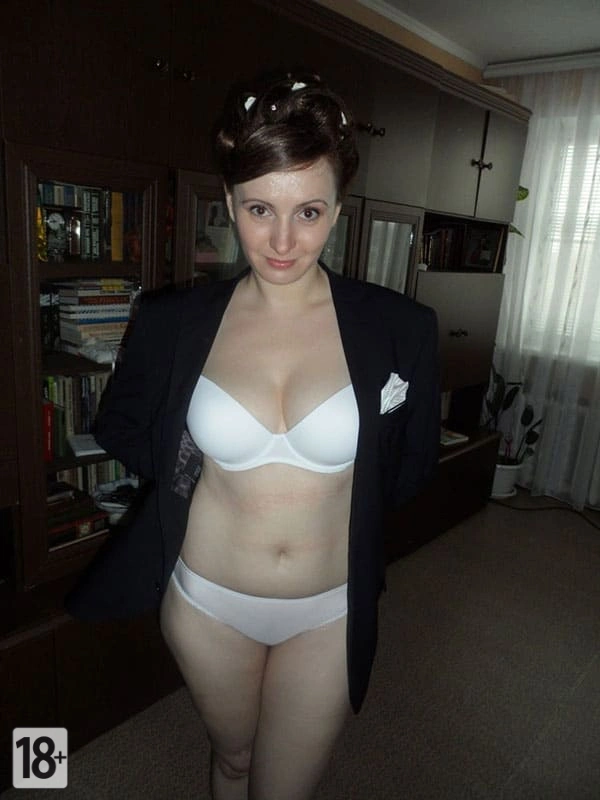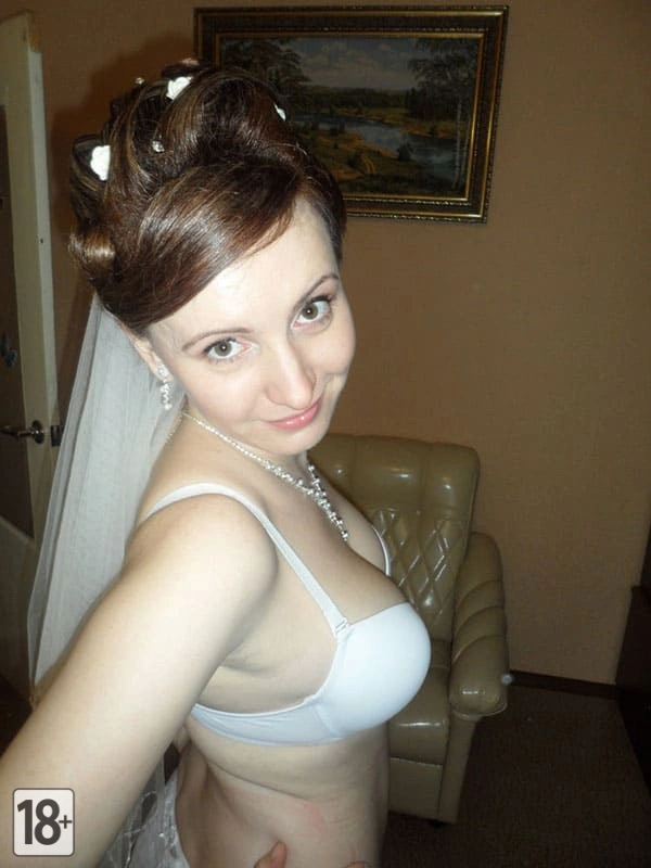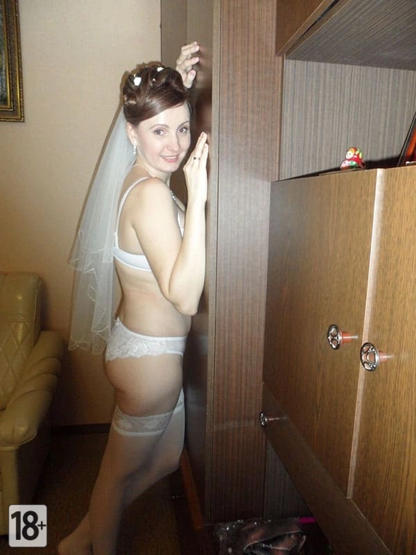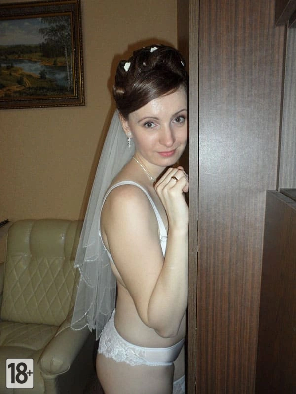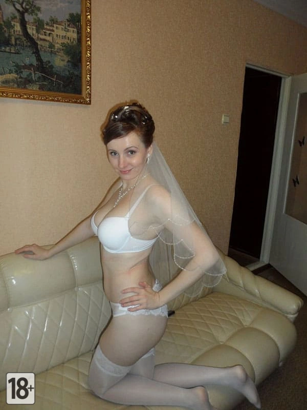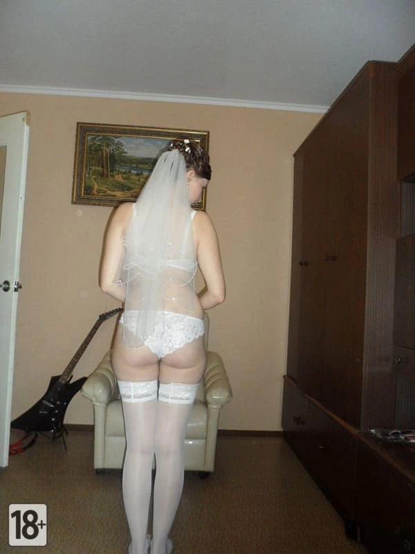 Вот тебе и ню фото после свадьбы. Молодая русская невеста, как только оттопырила свадебное платье, так сразу и начала позировать перед мужем. В обычной домашней обстановке, да еще и в таком сексуальном белье - белоснежном и кружевном. А мужик, как настоящий профи, снимает все это на камеру. Ну что тут сказать, красота и сексуальность в одном флаконе!