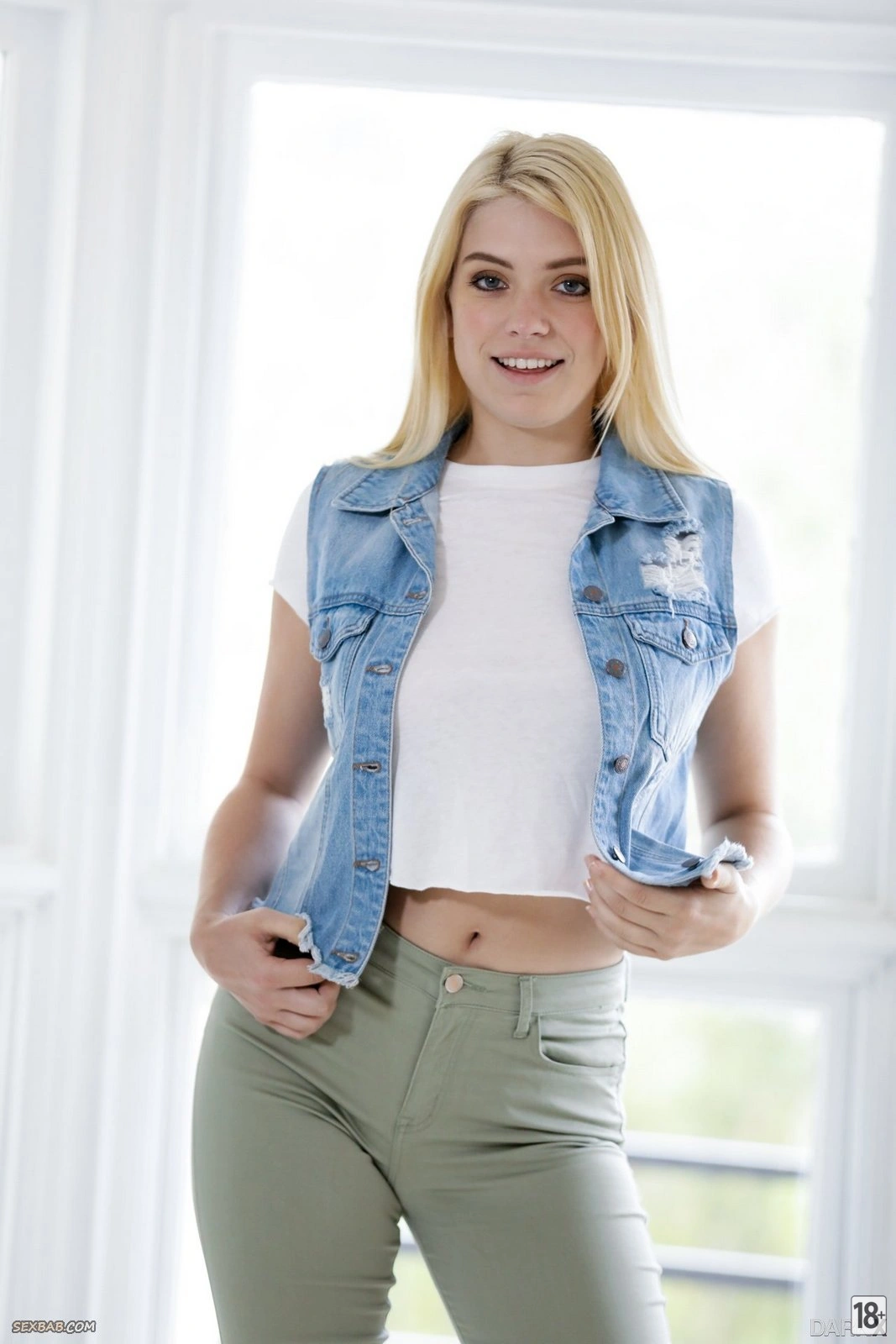 Эта сексуальная блондинка с натуральными формами медленно снимает свою футболку, а затем и штаны, и белые кружевные трусики. Она игриво раздевается перед камерой, принимая разные позы, которые должны возбудить.