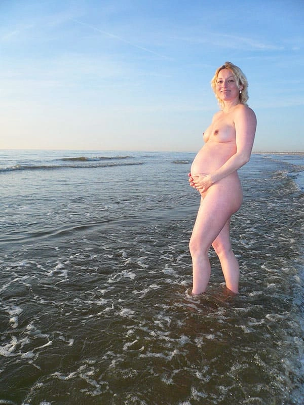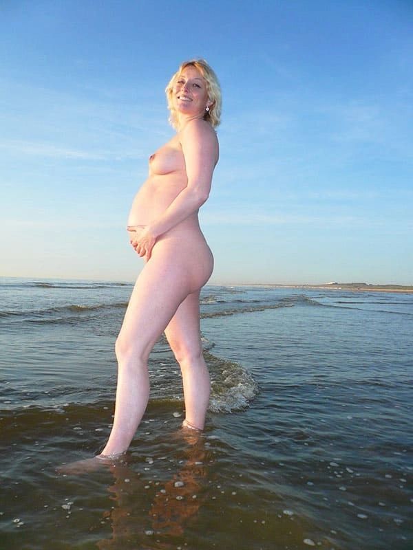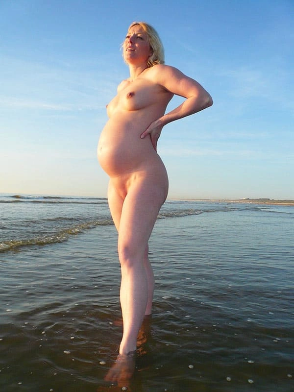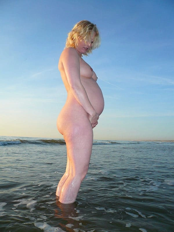 Голая блондинка на 9 месяце беременности на нудистском пляже