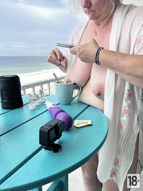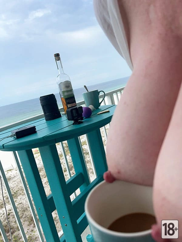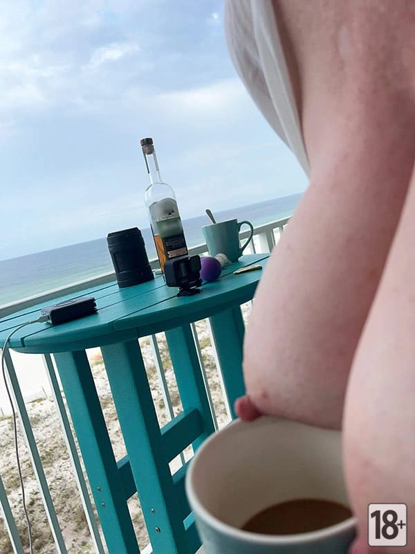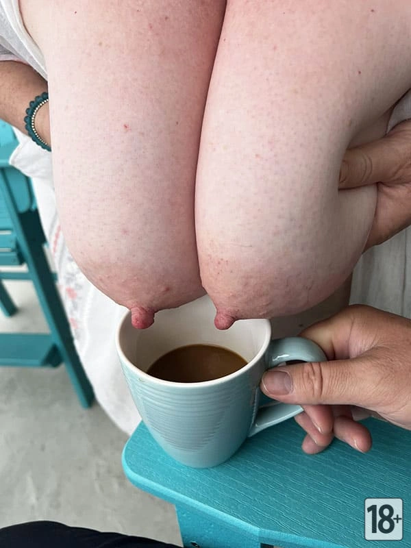 Толстуха добавляет в утренний кофе молока из больших титек Толстушка средних лет наливает в кофе свежайшее молоко из своих сисек, сидя голышом на летней веранде и наслаждаясь шикарным видом на море. Сиськи 26/08/2025 14:52 0 57