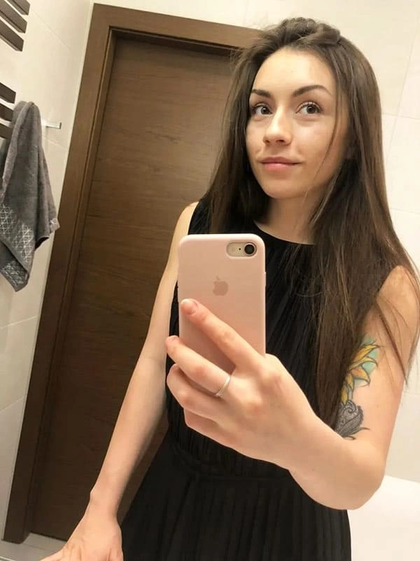 Брюнетка полностью разделась в туалете на работе ( 13 фото )