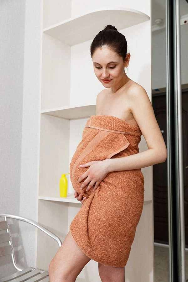 Вчера вечером я видел, как наша соседка, та худенькая беременная девушка, вышла из душа. И она такая красивая, в одном полотенце стояла, а ее большой беременный животик был уже почти до самых колен. И она начала растирать на нем массажное масло, прямо голенькая стояла, заботилась о своем малыше. Я так восхищаюсь такими женщинами, они такие сильные и красивые, даже будучи в положении.