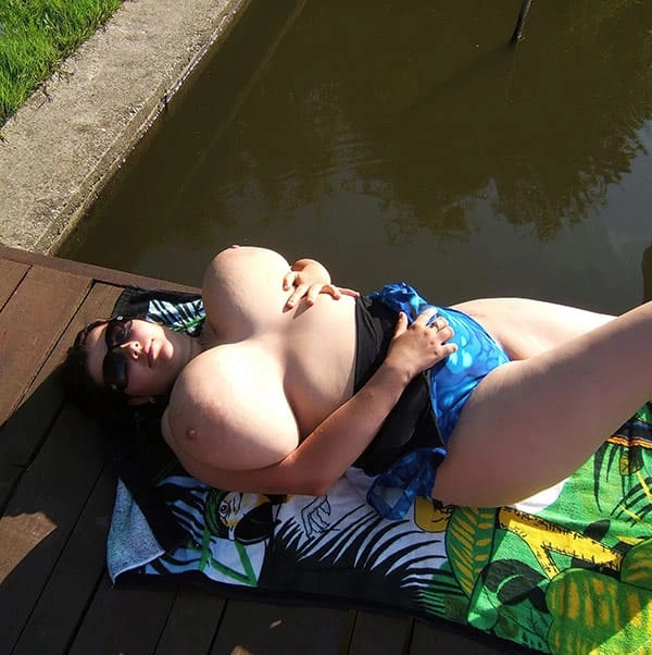 Соблазнительная красотка расположилась на шезлонге в саду роскошного особняка, щедро оголив свои божественные прелести под палящим солнцем. Ее грудь, такая пышная и соблазнительная, словно приглашает к себе, жаждущая получить нежное прикосновение лучей и тайные ласки воздуха.