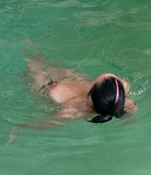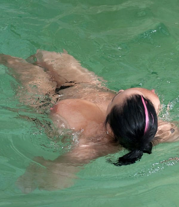 Она не стесняется своего тела и наслаждается прохладной водой, плеща своими пышными формами. Вокруг нее собираются люди, оглядывают ее и шепчутся, но она не обращает на них внимания, ведь она знает, что ее тело прекрасно и достойно любви и восхищения. Девушка наслаждается своей свободой и радуется каждому мгновению, проведенному в бассейне, ведь она знает, что никакие стереотипы не могут ограничить ее и ее желание наслаждаться жизнью и своим телом. Ведь кто сказал, что плавать голой не круто? Эта девушка доказывает, что красота и сексуальность не зависят от размера.