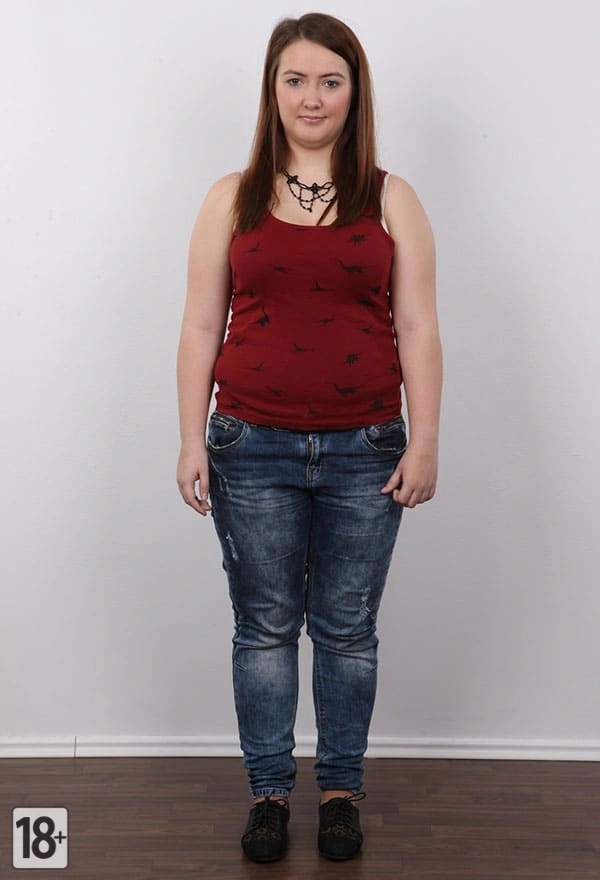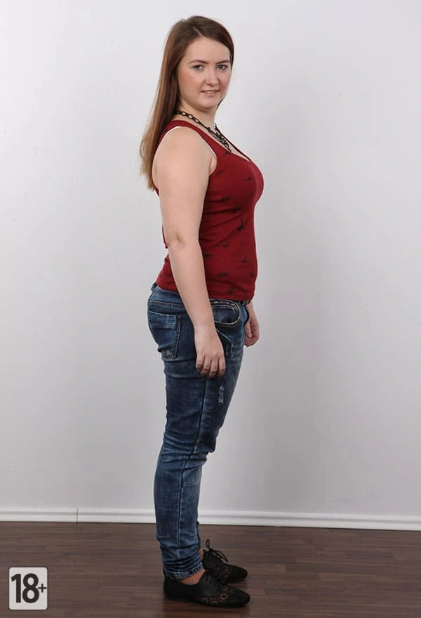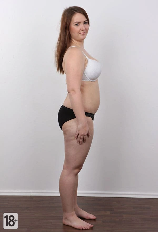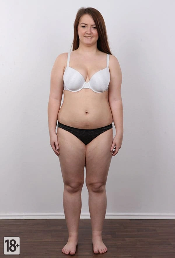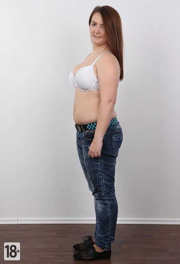 Толстая девушка раздевается на студийной порно фотосессии
