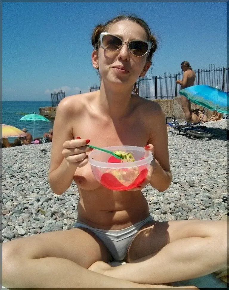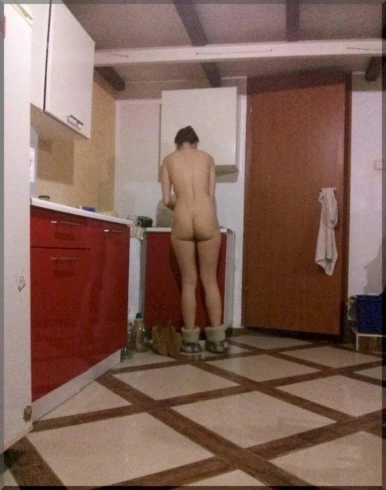 Одна девушка любит делать пошлые фото свой жизни, вот она с утра ищет чистые трусы, потом идёт на пляж позагорать голой, а вечером в нижнем белье с аппетитной попкой готовит ужин.