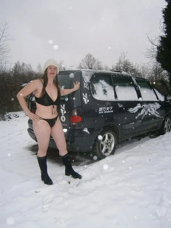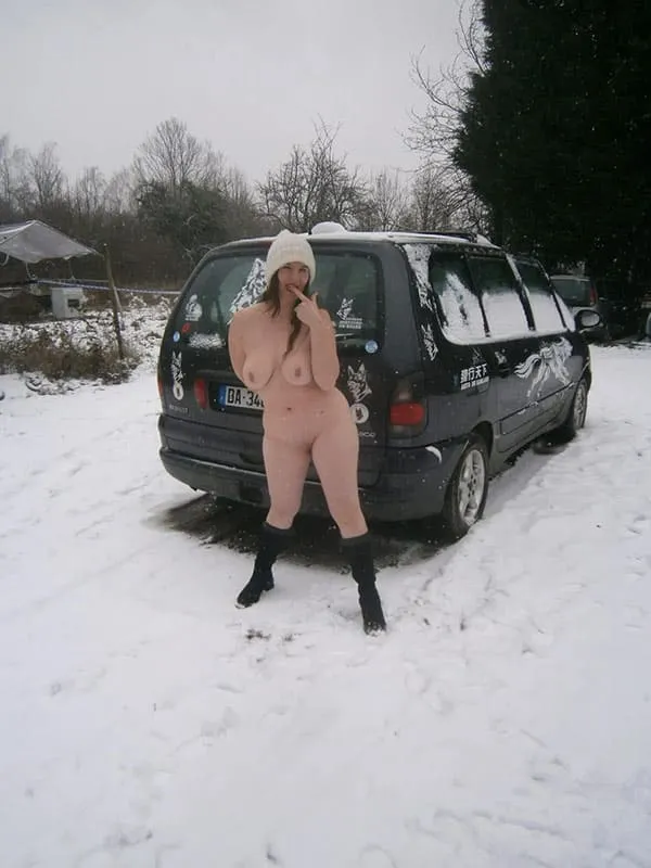 Огромная жопа моей жены зимой во дворе дома