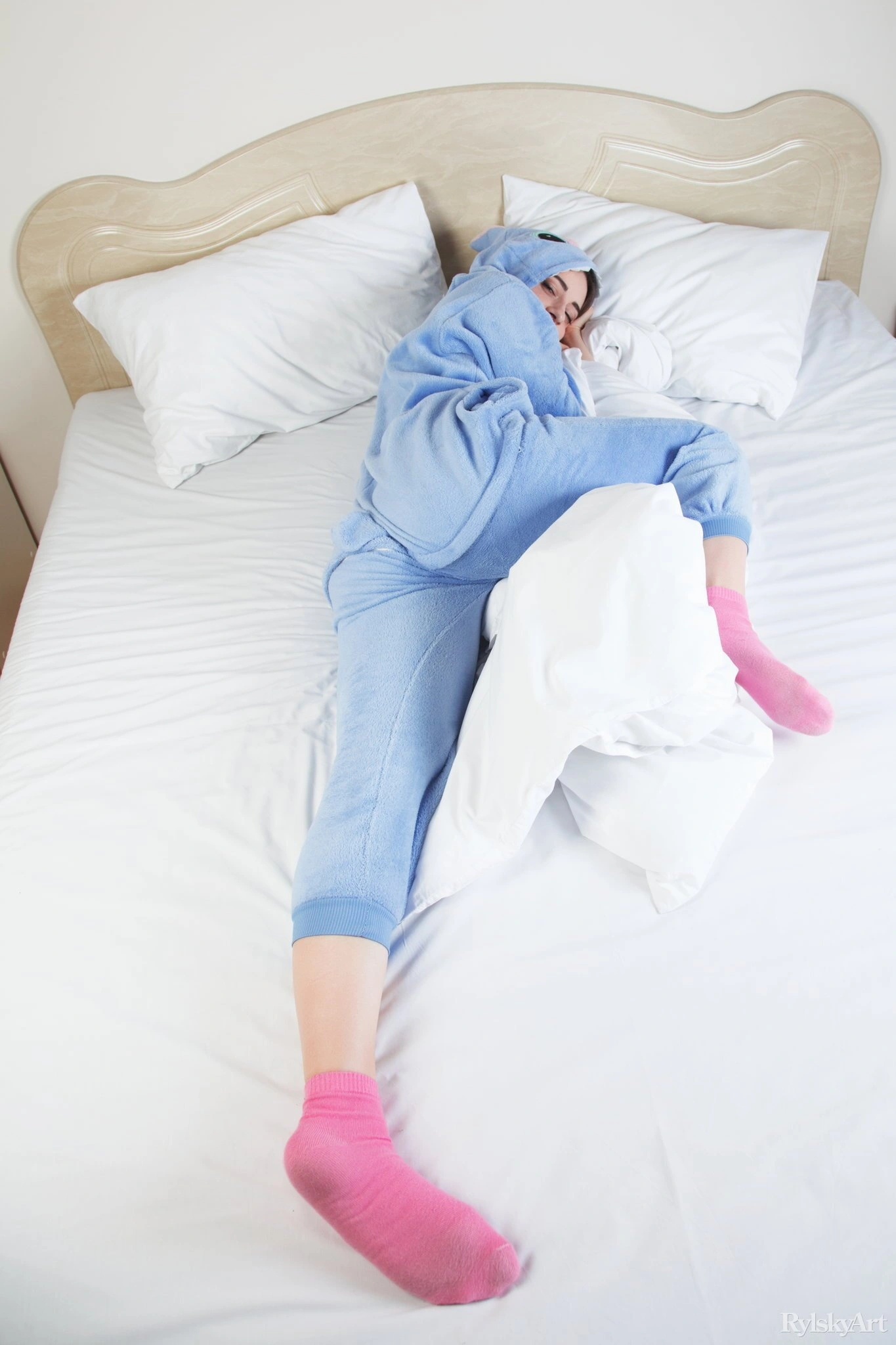 Лежачи на постели как бесстыдная кошечка, этот симпатичная девушка нагло показывает перед объективом свою огромную задницу через гигантскую дырку в ее пижама. Постепенно раскрывая все свои прелести под одеждой, извращенка не стесняется хвастаться своими большими дойками и в различных позах приводить в положение свои сочные бедра с гладко выбритой вульвой между ними.