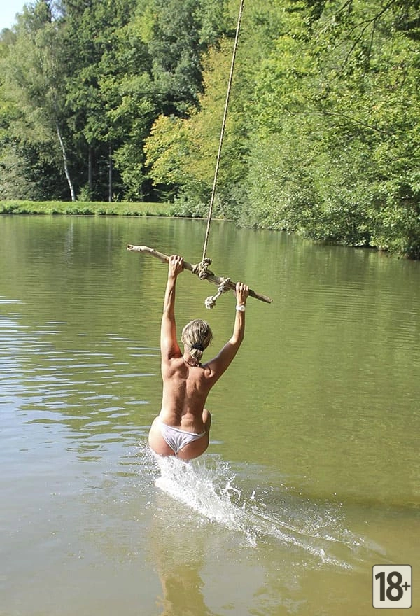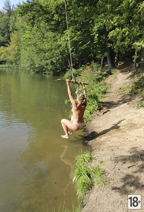 На озере царит атмосфера полной свободы и природной красоты, где молодая нудистка, весело ныряя с тарзанки в воду, наслаждается отдыхом со своим любимым на бескрайней природе. Пейзажи озера и диких лесов захватывают дух и открывают истинный смысл обнаженной природы и её прекрасного союза с человеком. Загляни в эту галерею и окунись в мир беззаботного и гармоничного единения с природой!