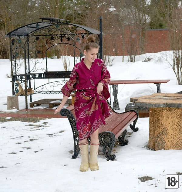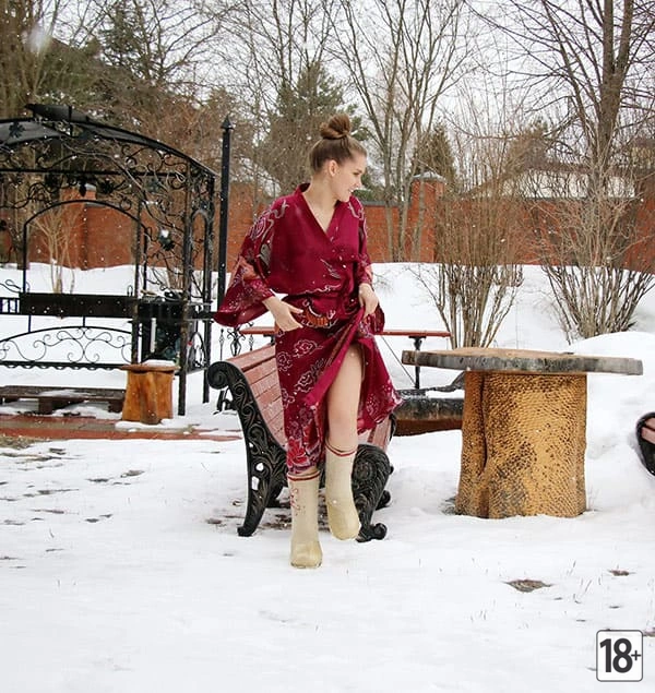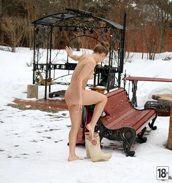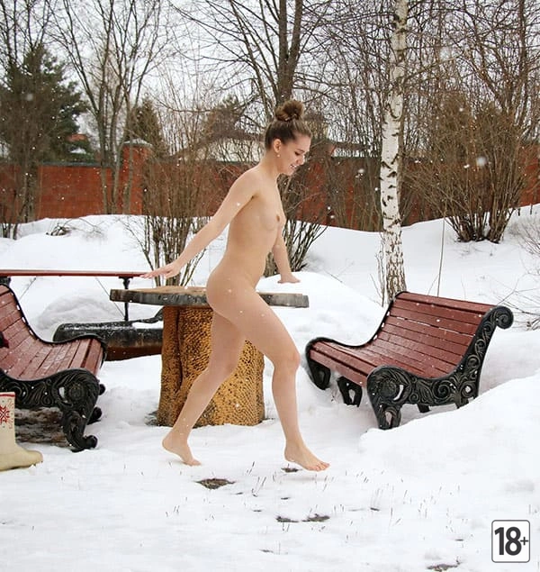 Молодая девушка в сугробах: первая любовь к снегу и радость голышом