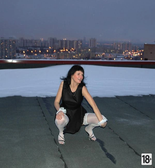 Русская милфа в чулках — зимняя страсть на крыше