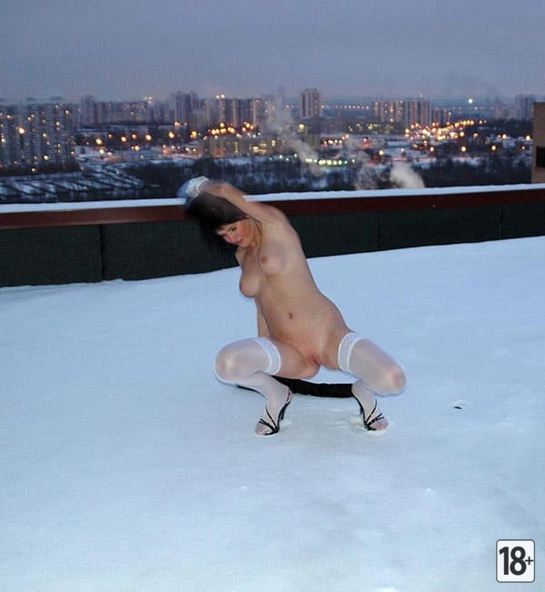 Пошлые фото русской милфы в белых чулках на заснеженной крыше — видны круглые сиськи, упругая задница и соблазнительные изгибы тела. Она вся голая, а за спиной — зимний пейзаж и городские огни 🍑🔥❄️ Каждый кадр будит воображение, подчёркивая женственность и страстность момента 💋 Наслаждайся настоящей красотой без прикрас.
