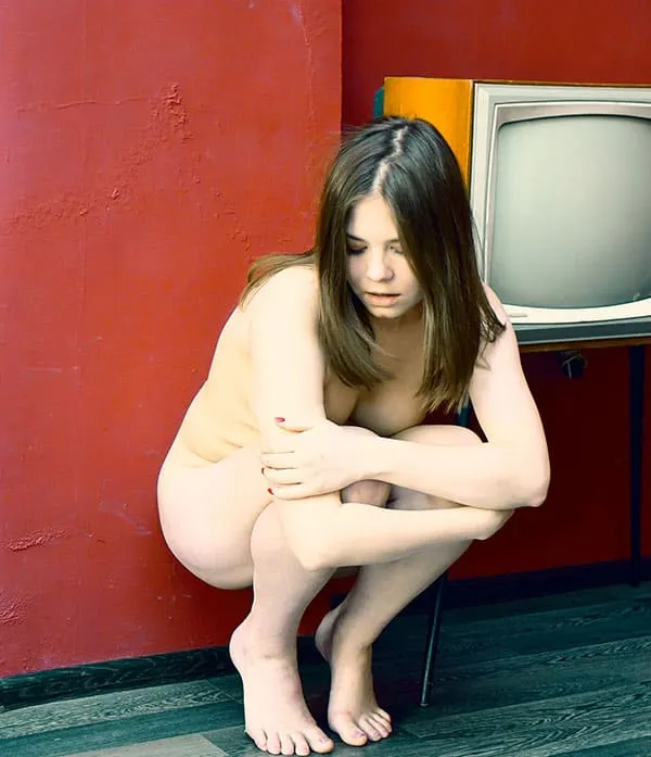 На снимке запечатлелась голая красавица в окружении советской ретро атмосферы. Ее изящное тело, обнаженное перед старым телевизором, словно призывает к сексуальной игре в стиле прошлого века. Взгляд девушки полон загадочности и желания, а ее пышные формы притягивают взгляды и возбуждают воображение. Старый телевизор становится свидетелем ее соблазнительных движений и непринужденной голой красоты, создавая неповторимую атмосферу страсти и романтики.