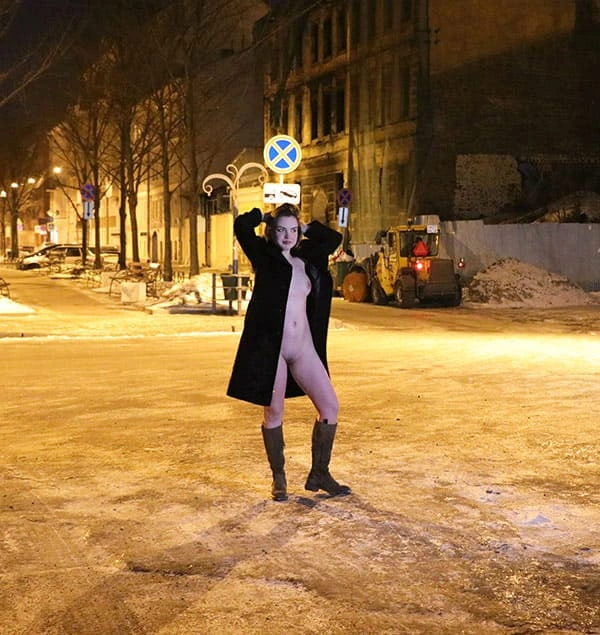 Темная ночь окутывала город холодным воздухом, но это не остановило ее. Она прогуливалась по заснеженным улицам Петербурга, обнаженная и уверенная в своей сексуальности. Ее тело, покрытое лишь тонким покрывалом снега, восхищало своей красотой и смелостью. Она не боялась показать свои формы, наслаждаясь вниманием прохожих, которые не могли отвести взгляд от ее соблазнительной походки. Любительские фотографии этой ночной прогулки запечатлели ее дерзкие поступки и вызыв