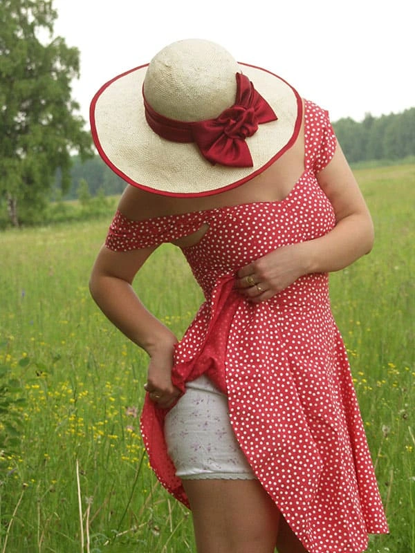 Женщина в панталонах раздевается в поле ( 93 фото )