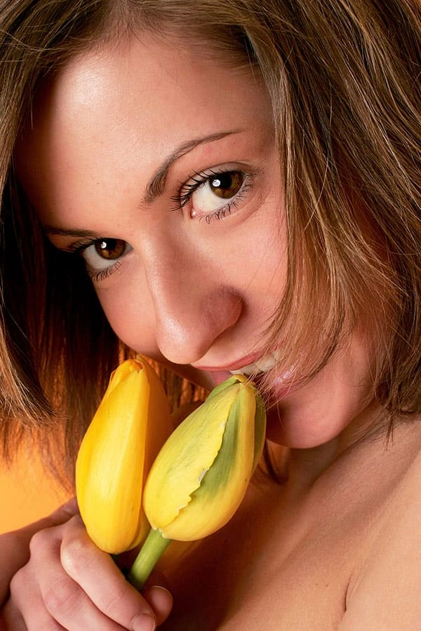 Молодая красавица из России, пленительно улыбаясь, прикоснулась к нежным лепесткам желтых тюльпанов. Ее рука медленно скользила по стеблям, словно играя с их изящной формой. Вдохнув аромат цветов, она почувствовала, как страсть охватывает ее тело. И, не в силах сдерживаться, она сняла даже свои трусики, оставив свое тело полностью обнаженным перед этими прекрасными цветами.