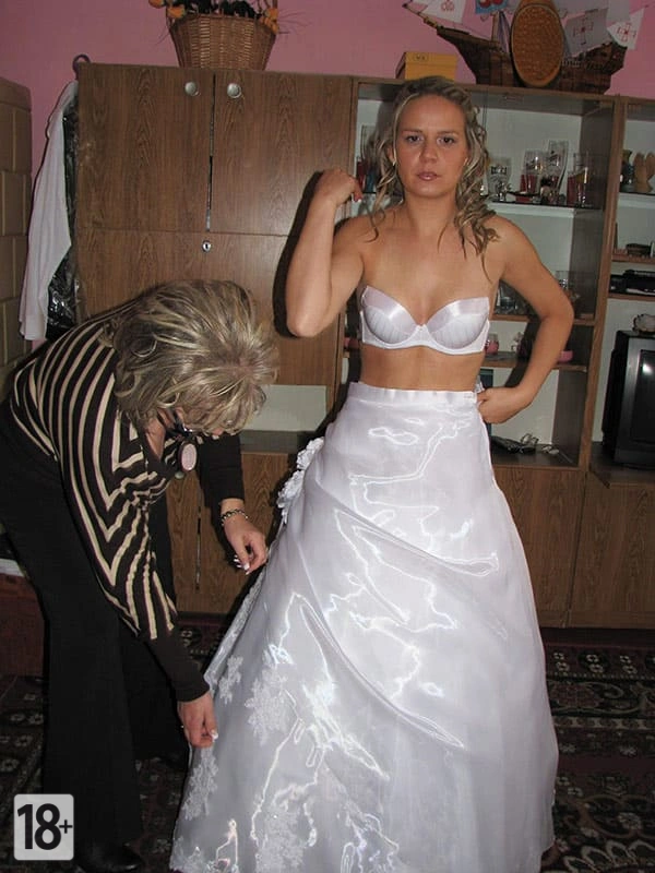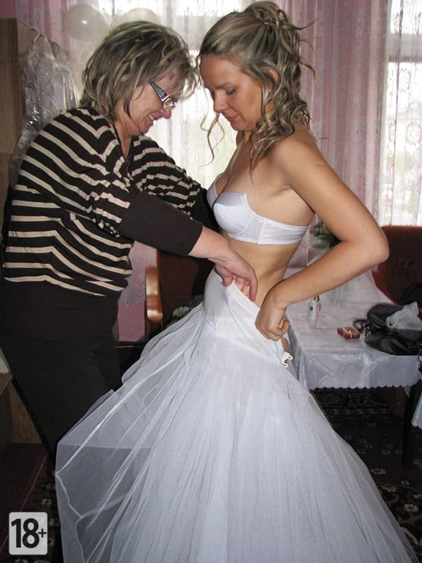На сборах у нашей русской невестки были пикантные фотки! Там она в свадебное платье, а рядом с ней - зрелая женщина, помогает ей нижнее белье с подвязкой надеть. Ах, какие они обе сексапильные, прямо настоящие красотки! Ну, и что теперь, говорят, что это норма для наших свадебных традиций. Ну, не знаю, братцы, но мне нравится!