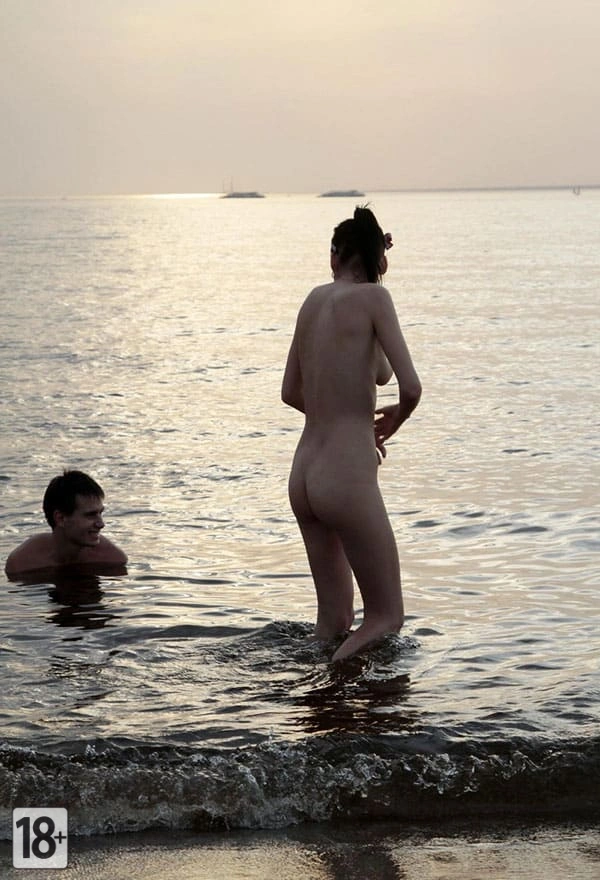 Пьяная девушка на пляже разделась догола