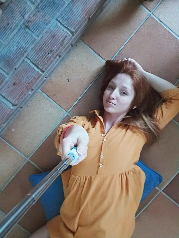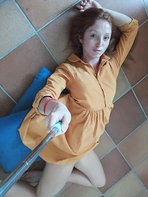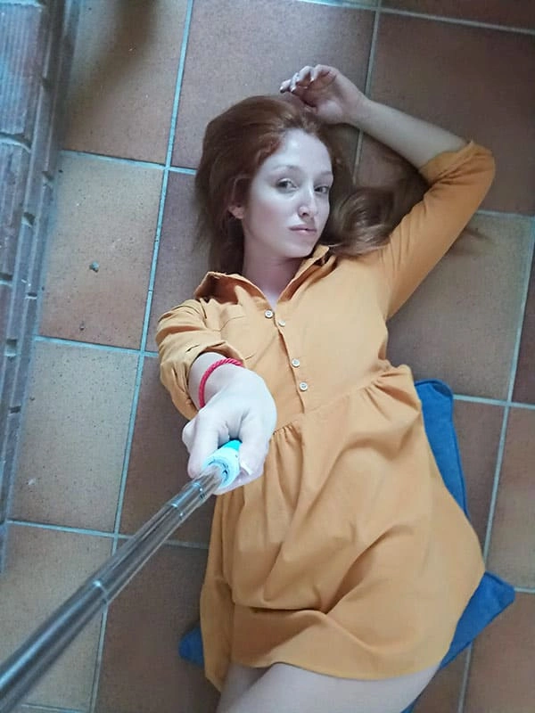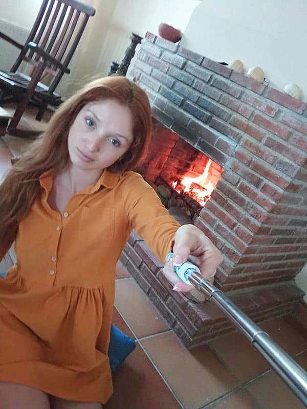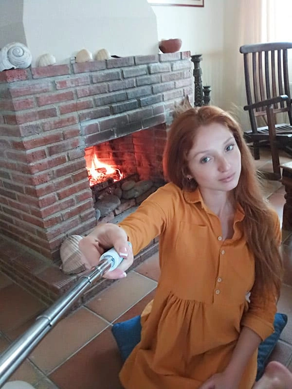 Рыжая мамка сделала красивое селфи у камина