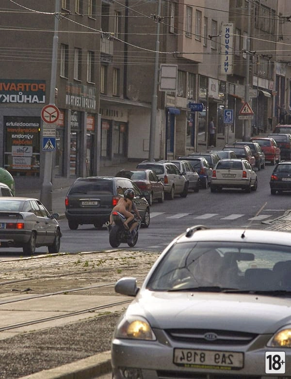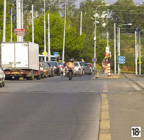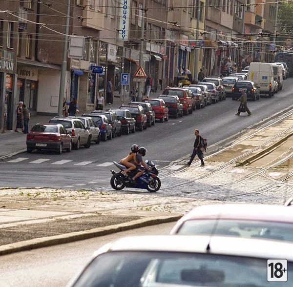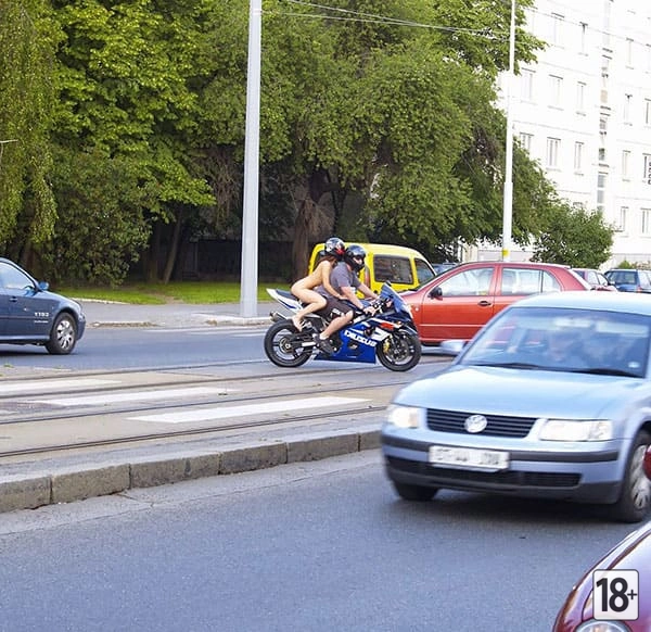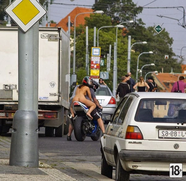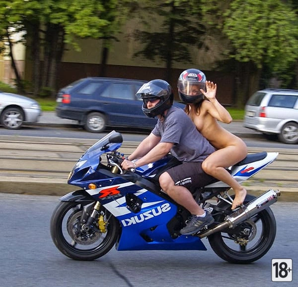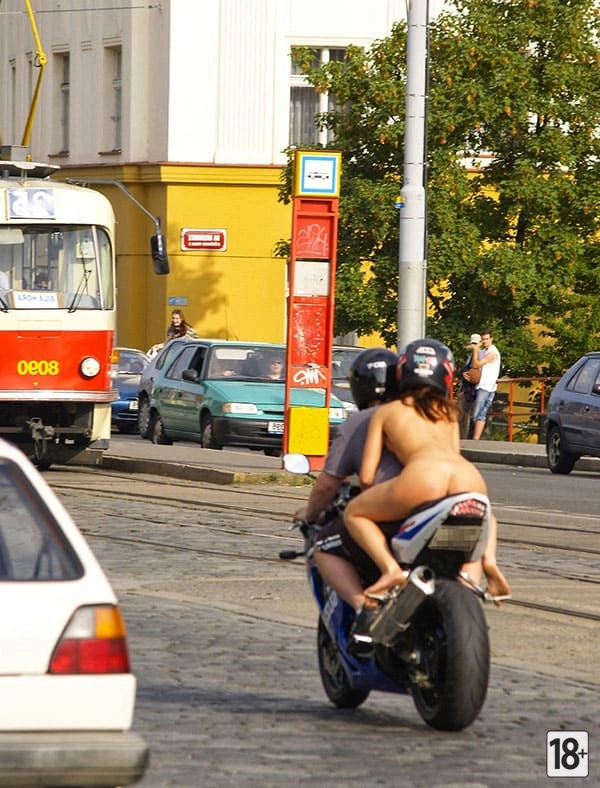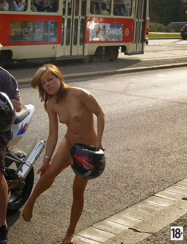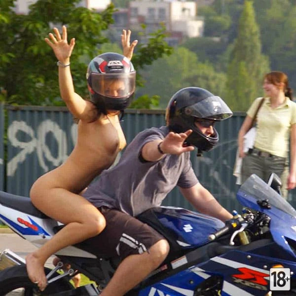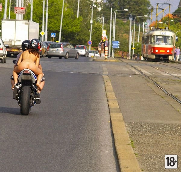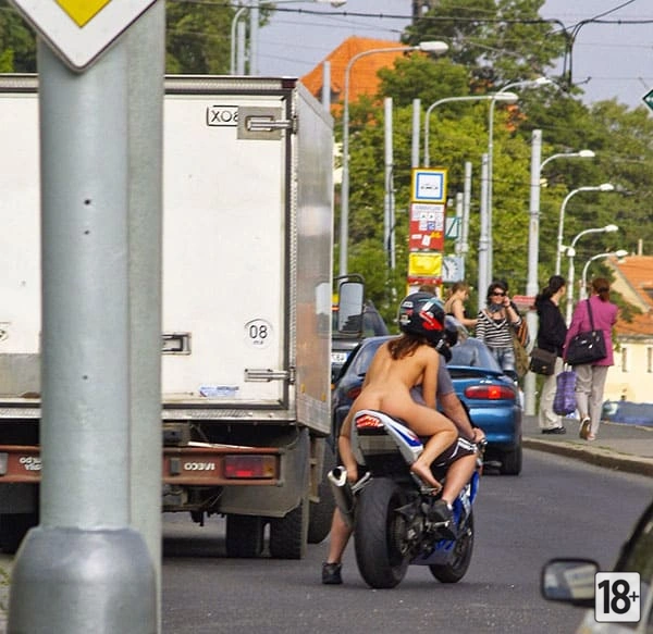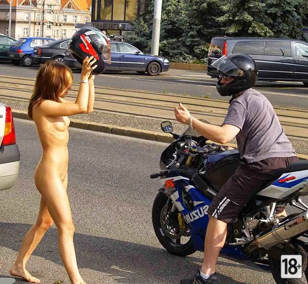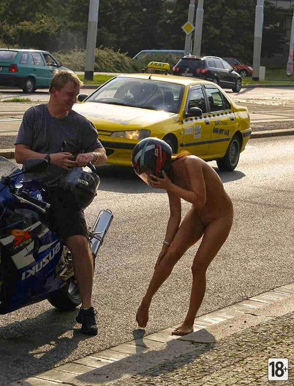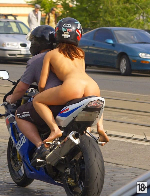 Голая девушка на мотоцикле — жаркие фото в центре города