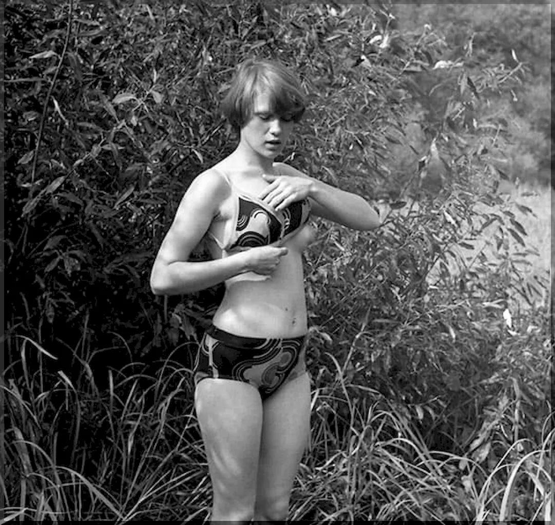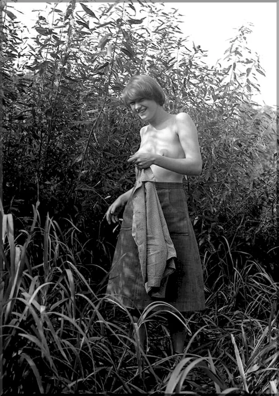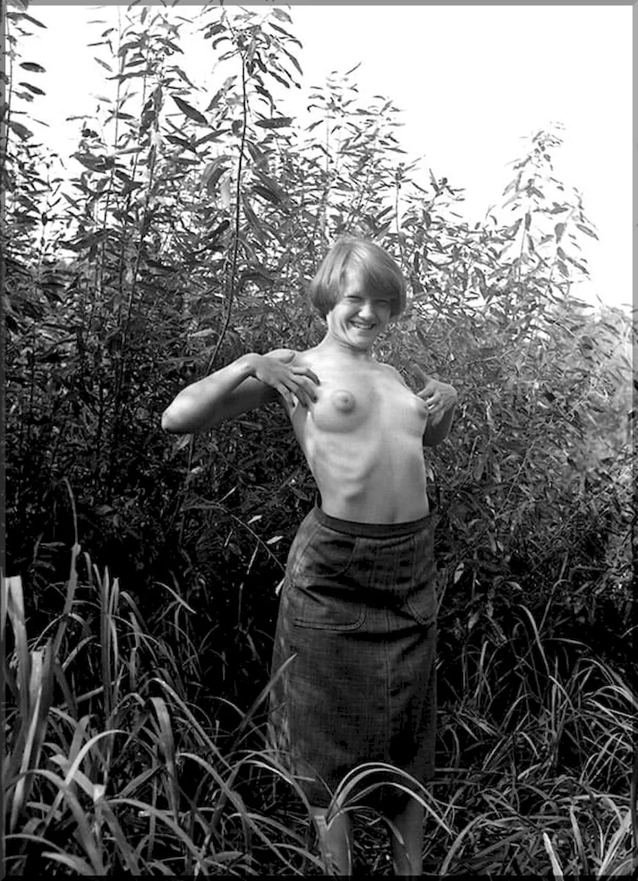 Русское ретро девушка разделась в кустах. Старые интимные фото. Девушка в кустиках показывает сиськи и натуральную попку. Эротика из СССР.