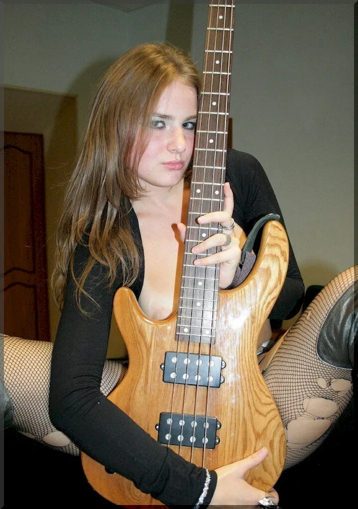 Эротические фото: обворожительная красотка с гитарой и порванными колготками