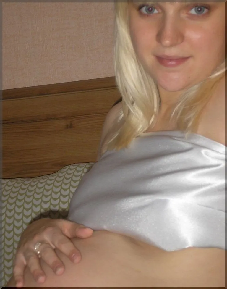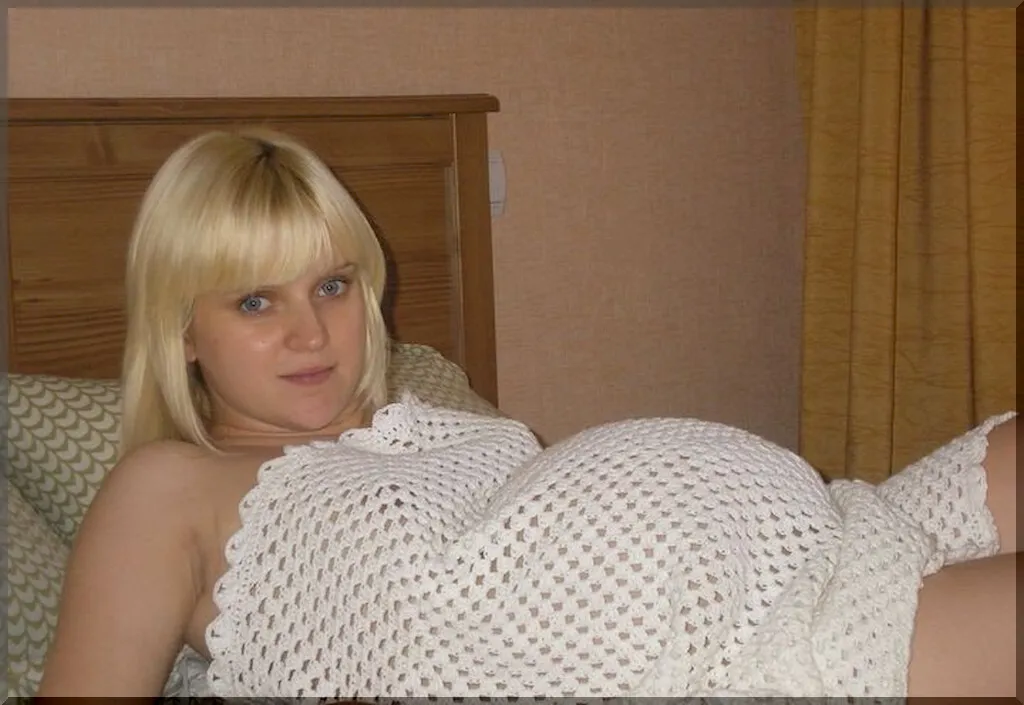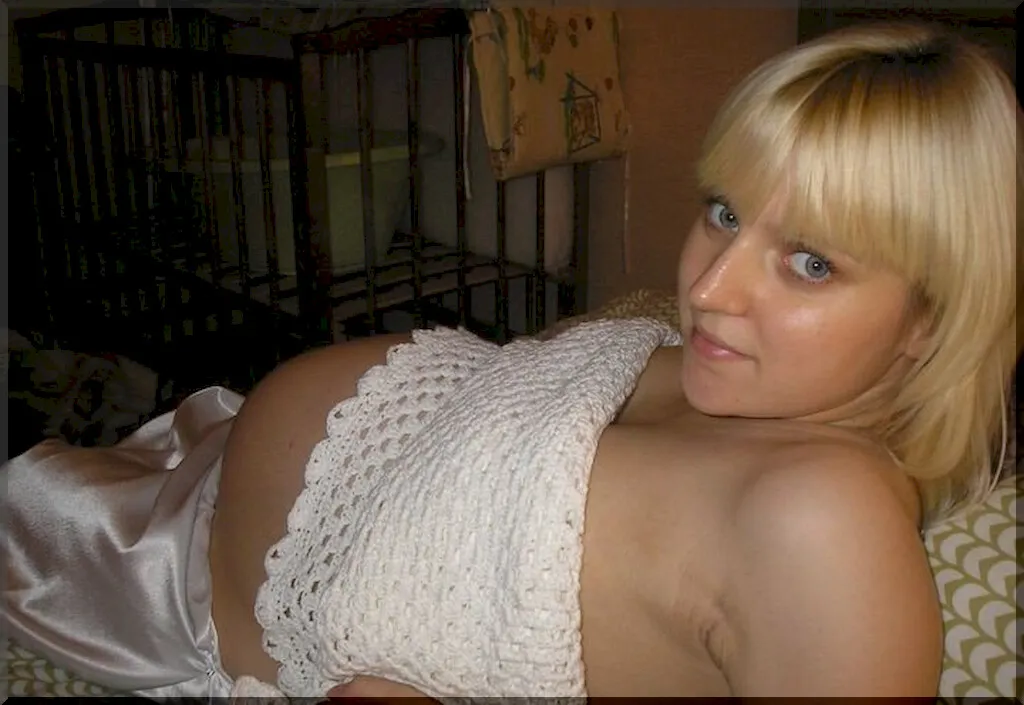 Молодая блондинка с серыми глазами из Калининграда, Вика, выглядит особенно привлекательно с нагулявшимся пузом. Ее хрупкая фигура стала еще более пышной из-за беременности: груди наполнились молоком, соски набухли, а когда она снимает лифчик, становится четко видно, насколько сексуальны ее сиськи. Но и в положении Викуля не утратила своей милой привлекательности, особенно когда она лежит голой на кровати!