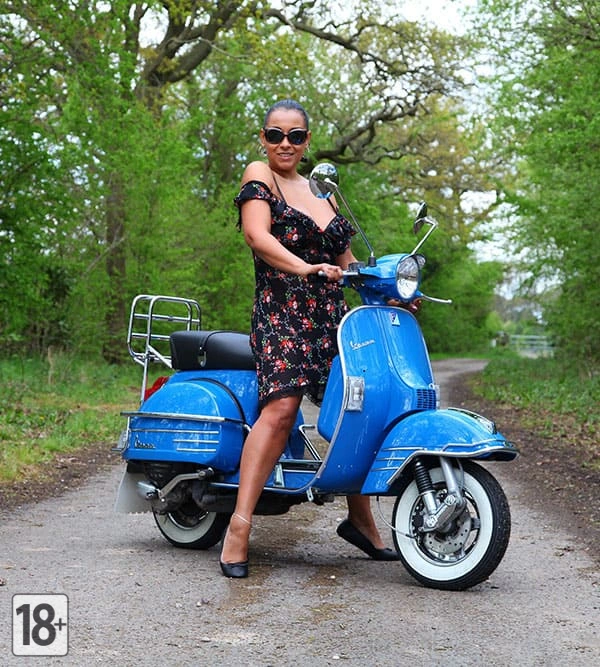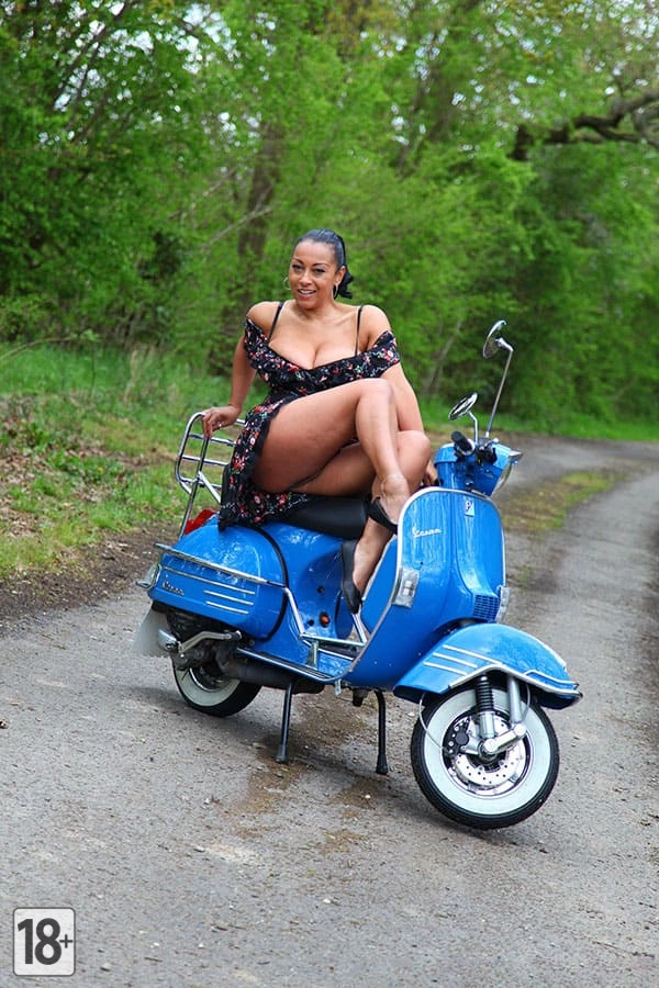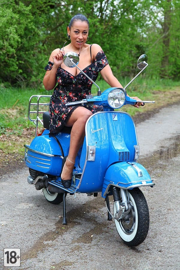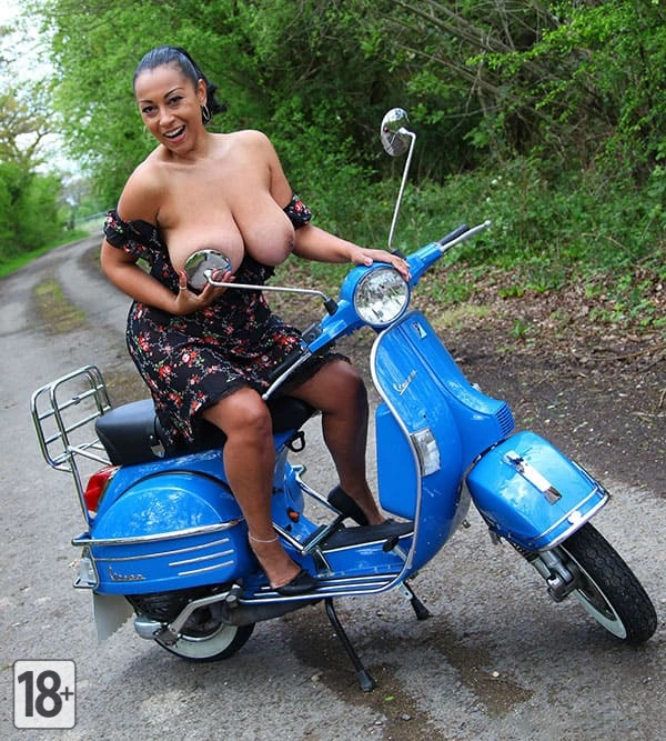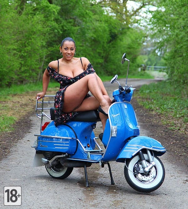 Ты слышал, про ту негритянку, что сиськи как у слонихи? Так вот, она сфоткалась голой на том итальянском скутере, как его там... Веспа! А на ней, братуха, какая-то взрослая тётка, вот сидит за рулем этого синего мопеда и между ног у неё лохматка, понимаешь? Какой-то странный фотосет, но, чё, кому как. Вот такие дела, братишка.