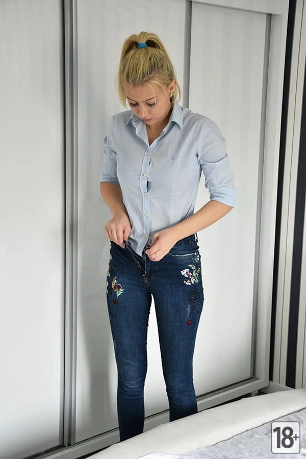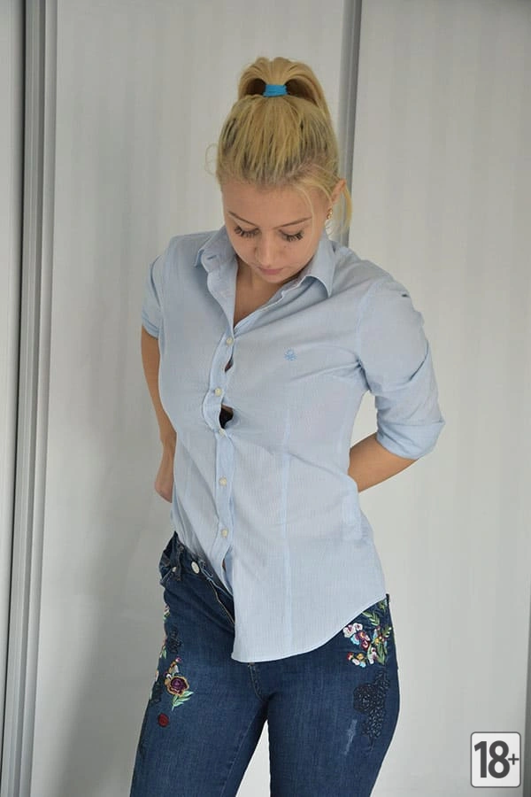 Она выбирает стильный наряд, подходящий для деловой обстановки. Пробегая взглядом по шкафу, она решается на одно из своих любимых платьев. Дополняя свой образ аккуратной прической и аксессуарами, она выглядит смелой и контрастной в темпераментном наряде. Голая кожа под тонкими тканями одежды лишь подчеркивает её хрупкую фигуру и придает образу ощущение соблазна. Завершив свой образ духами и туфлями на каблуках, она готова взять сегодняшний план работы в свои руки.