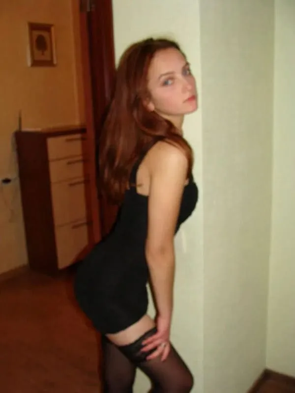 Стриптиз жены черном платье и чулках в коридоре ( 50 фото )