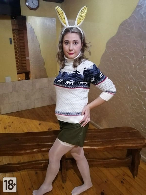 Недавно я попал на порно съемку в бане, да еще и с русской женой! А тут еще она в таких сексуальных заячьих ушках и белых чулках, прямо как настоящая крольчиха! И знаете, она не молодая уже, но как раздевается - аж дух захватывает! Все таки зрелые женщины - это нечто! Вот она позирует, вся такая развратная, а я прямо в шоке от такой красоты! Не могу поверить, что у меня такая соседка живет, а я и не знал!