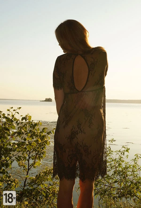 Русская жена позирует в прозрачном платье без нижнего белья