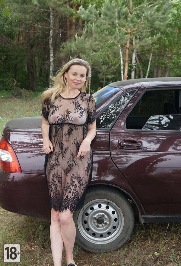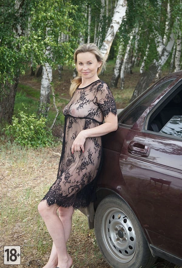 Ну ты представь, я сегодня в парке катался на машине, а тут на одной из полянок вижу - русская жена позирует! И не просто так, а в черном прозрачном платье, прям как в порнофильмах. А еще она без нижнего белья, блин, прямо на природе! Стоит, облокотилась на машину, а под этим кружевом просвечиваются ее большие сиськи и лысая щель пи*ды. Не могу сказать, что я обиделся, но немного удивился, честно говоря. Но, блин, смотришь и не оторваться, такая красота. Русские жены, братан, всегда умеют удивлять!