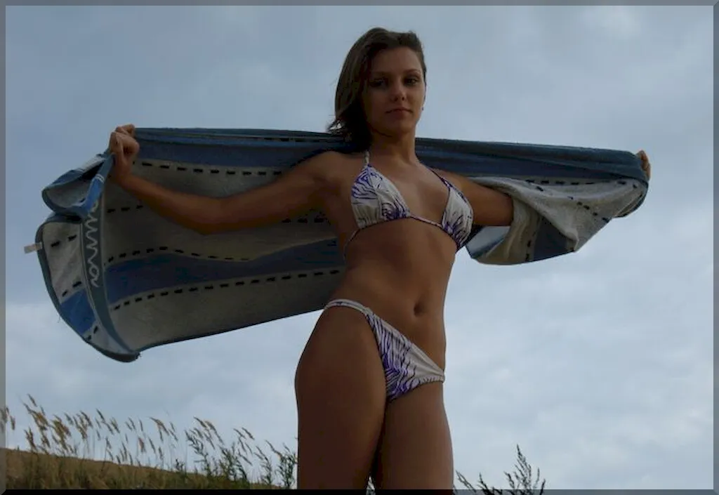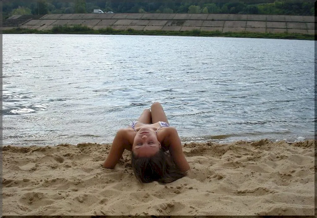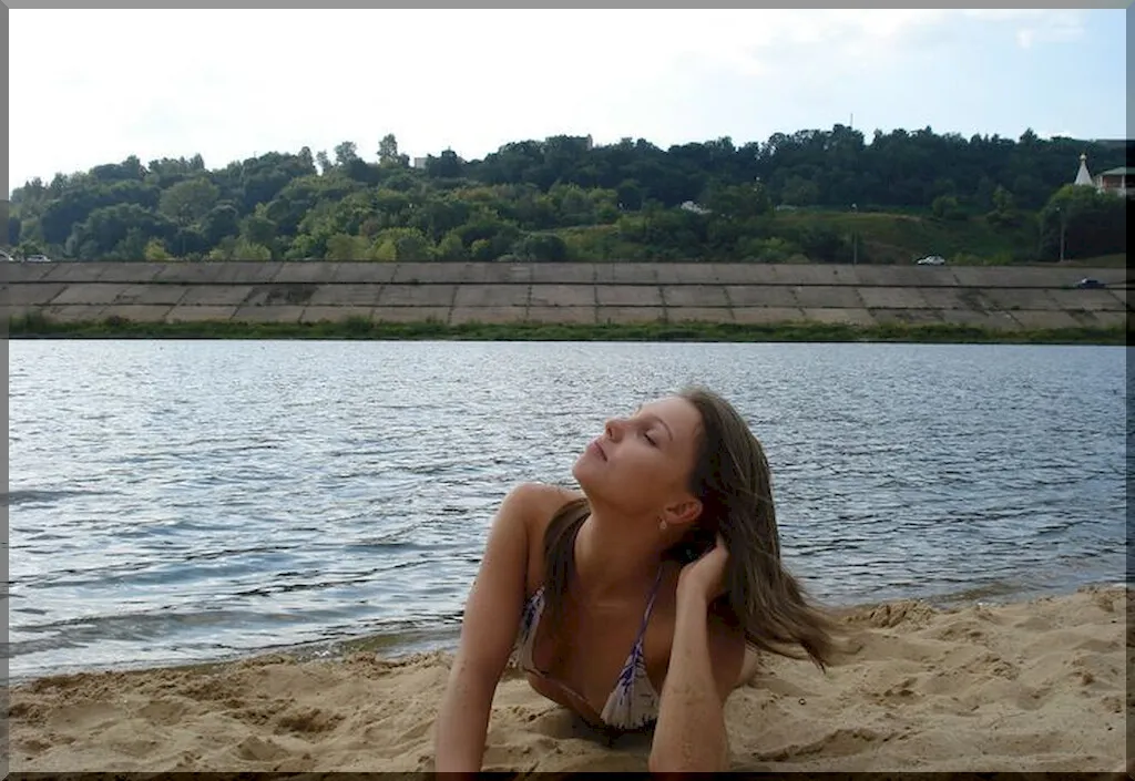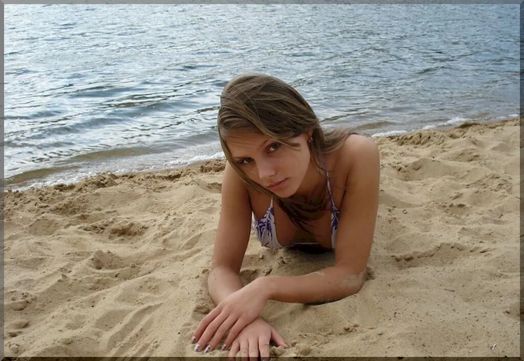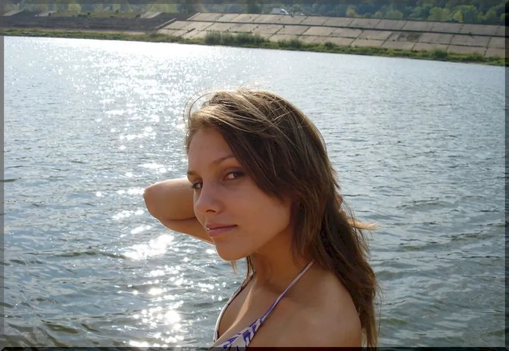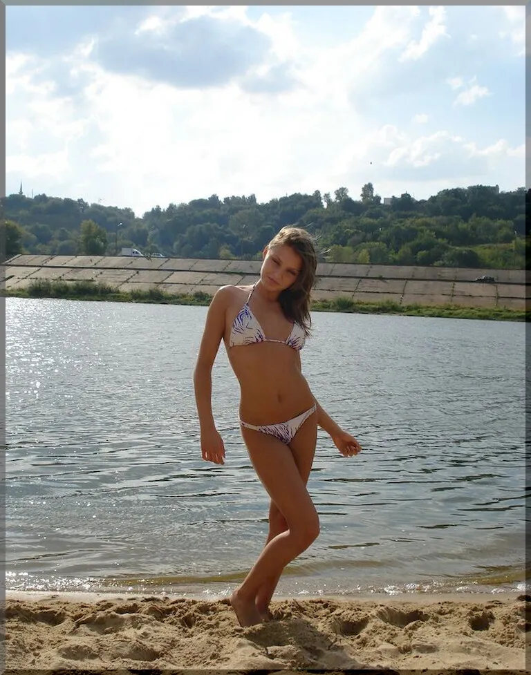 Очаровательная русская девушка в ярком бикини выглядит очень мило и невинно. Ее свежие молодые груди едва прикрыты лифчиком купальника, упругость которых ясно видна. Нежная кожа девушки привлекательно играет под лучами солнца. Несмотря на ее весьма пикантный внешний вид, она производит впечатление еще не испорченной жизнью девственницы. Вполне возможно, что все еще хранит свою невинность, и мужчины еще не раздвигали ее нежные девственные губки своим напором. На ее лице еще нет следов любви и страсти, лишь наивная детская улыбка и озорной взгляд.