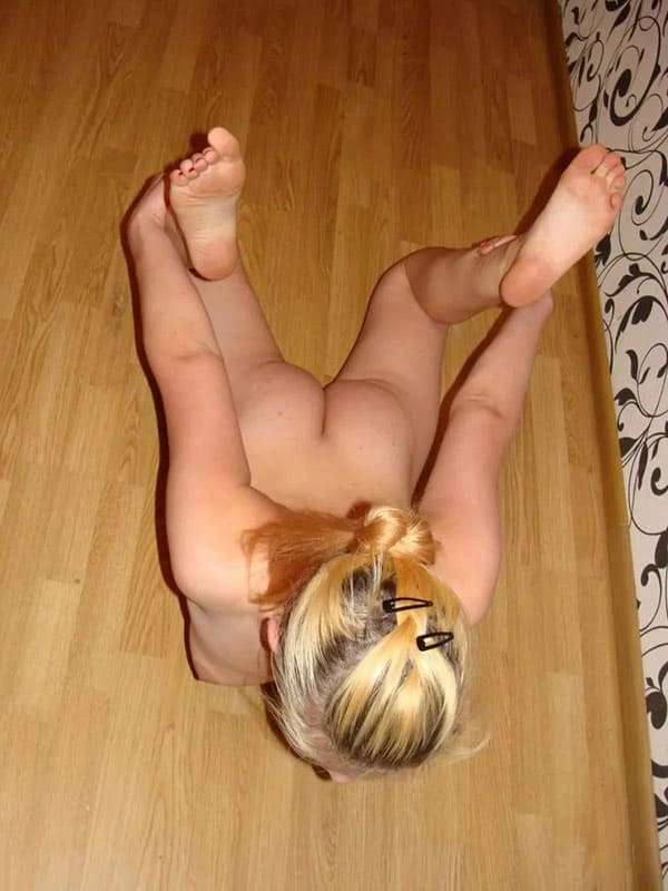 Соблазнительные кадры светловолосой красавицы, бодрящейся утром голышом и принимающей гибкие позы для растяжки всего своего тела.