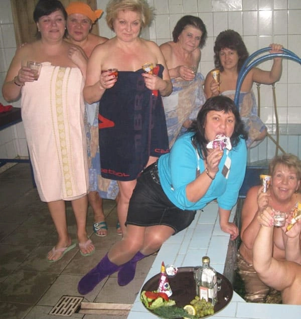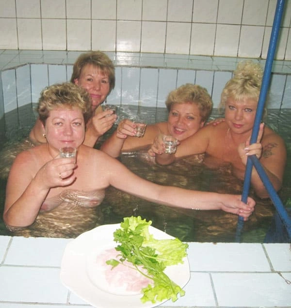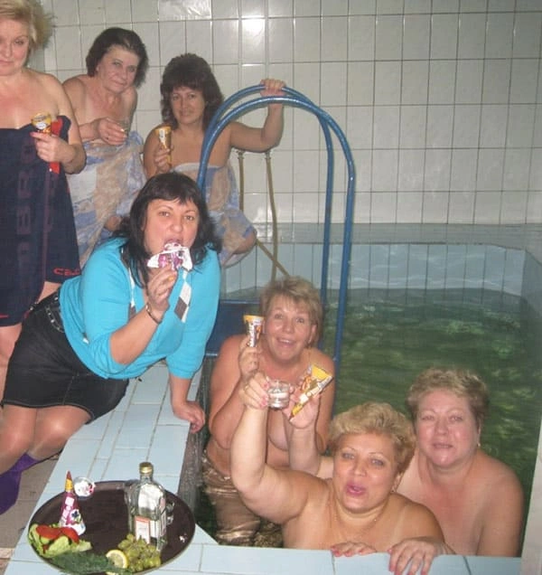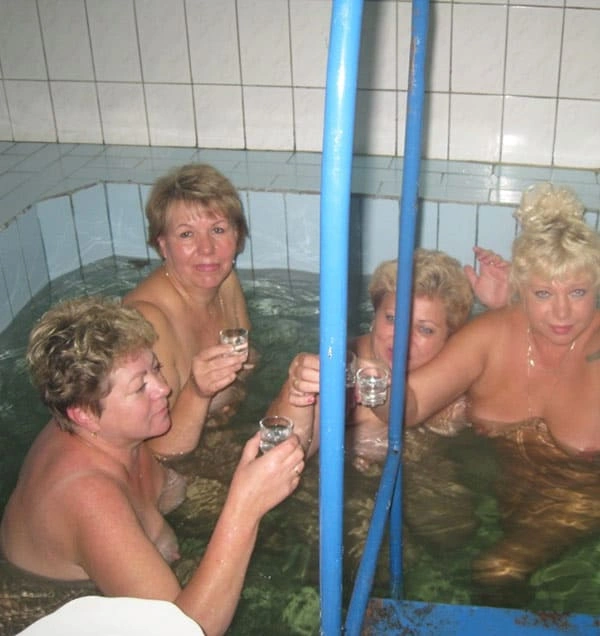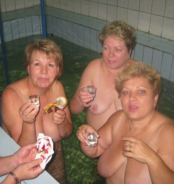 Вот это да, какой юбилей у наших русских зрелых женщин! Они решили отметить его в сауне, и я бы сказал, что это очень оригинальная идея. Там они собрались все вместе, ведь они уже давно дружат и проводят время вместе. Играют на бильярде, да еще и голые! Ну, это уже настоящая классика для наших женщин. И, конечно же, не обошлось без водки. Но ведь они не просто пьют ее, а делают это прямо в бассейне! Невероятно, правда? Вот такие они, наши русские женщины – всегда на позитиве и готовы к неожиданностям.